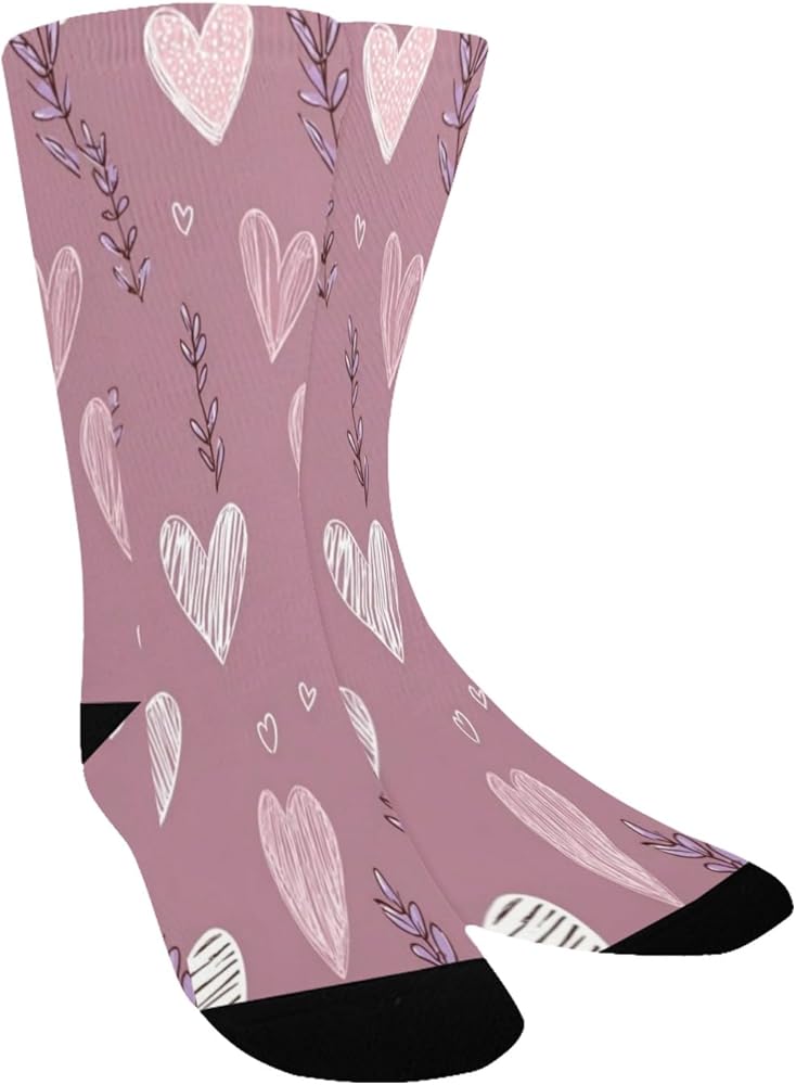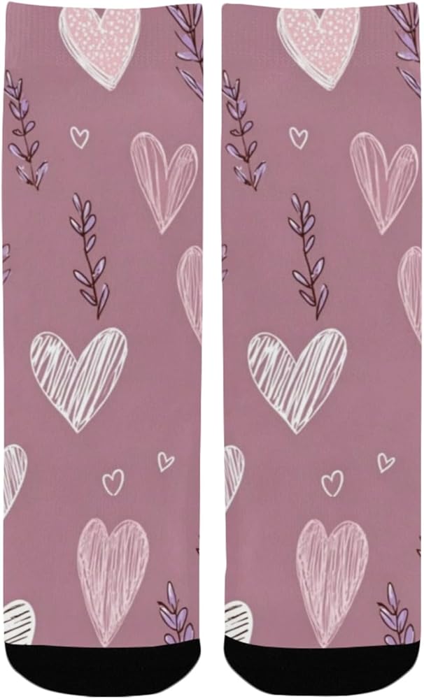 جوارب Lavender Heart Doodle للمشي لمسافات طويلة - جوارب شتوية حرارية سميكة دافئة للأولاد والبنات للمدرسة، والارتداء اليومي والأنشطة الخارجية