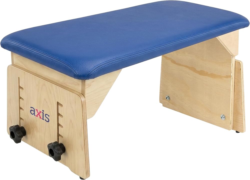 The Axis Therapy Bench features tool-free height and tilt adjustment using built-in slots and hand knobs, allowing therapists and educators to easily customize positioning without tools. The bench adjusts from 8” to 11” in height to accommodate individual therapy goals and positioning needs.