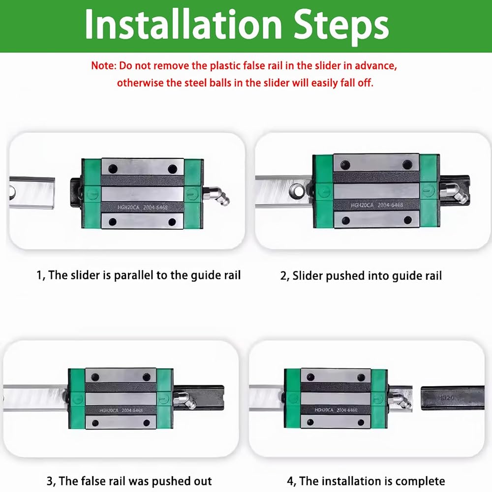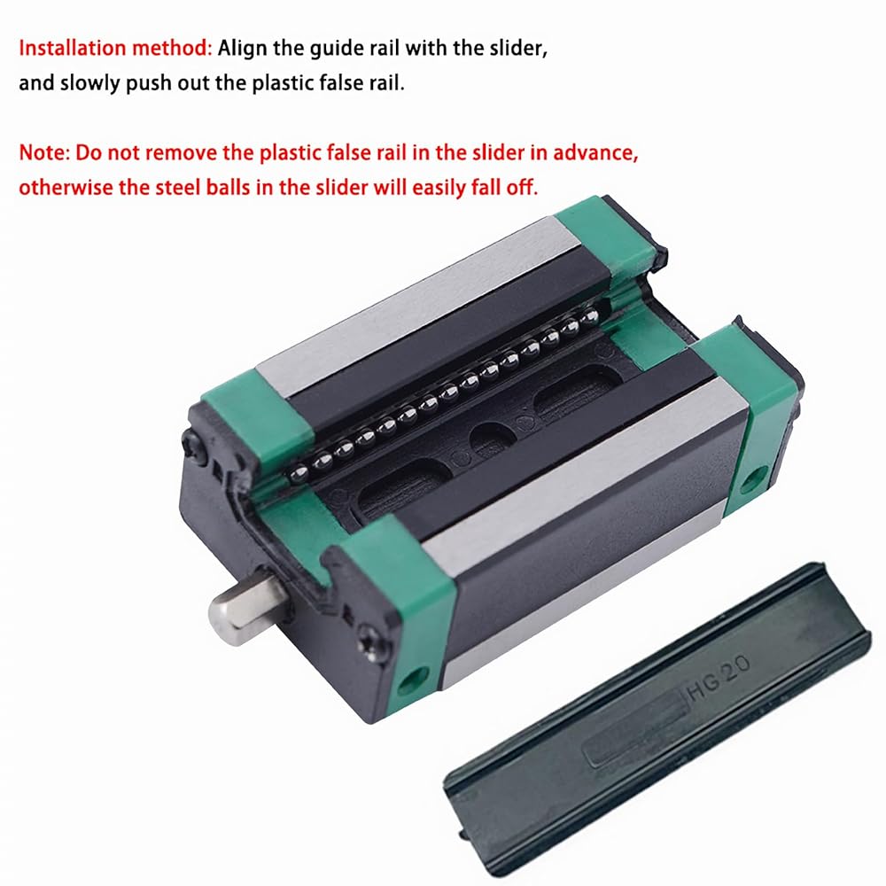 Installation method: Align the guide rail with the slider, and slowly push out the plastic false rail. Note: Do not remove the plastic false rail in the slider in advance, otherwise the steel balls in the slider will easily fall off.