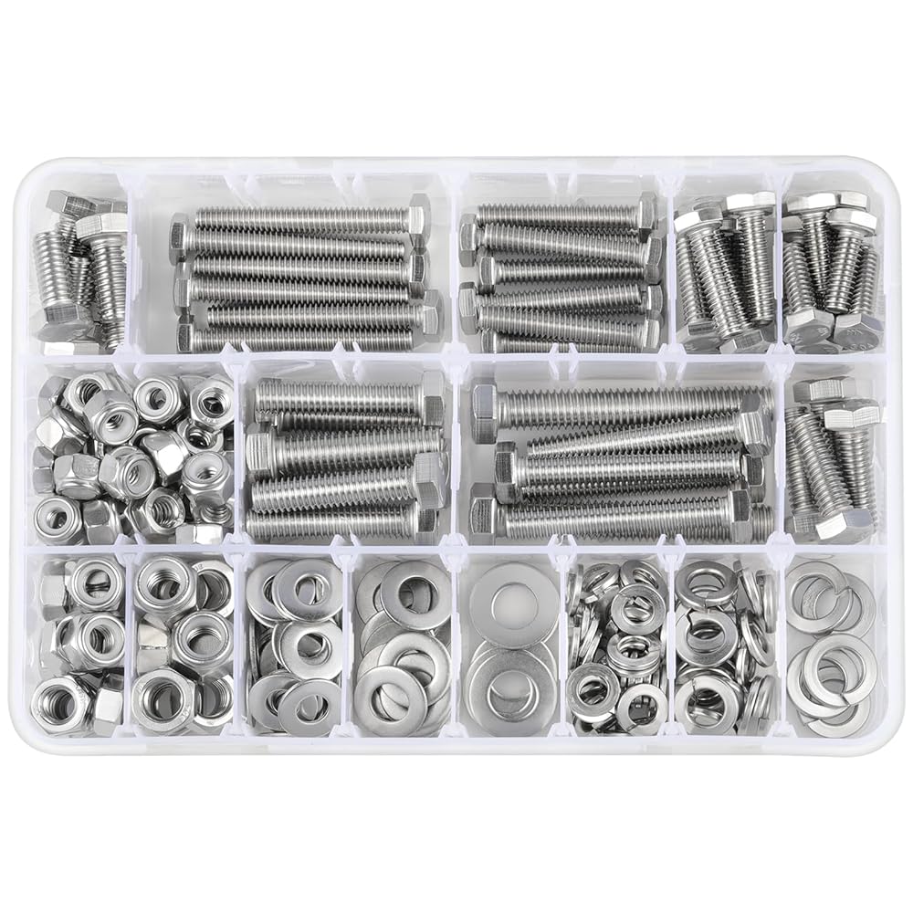 مجموعة متنوعة من البراغي والصواميل السداسية: 1/4-20,5/16-18,3/8-16 مجموعة غسالات مسامير سداسية وصواميل متنوعة