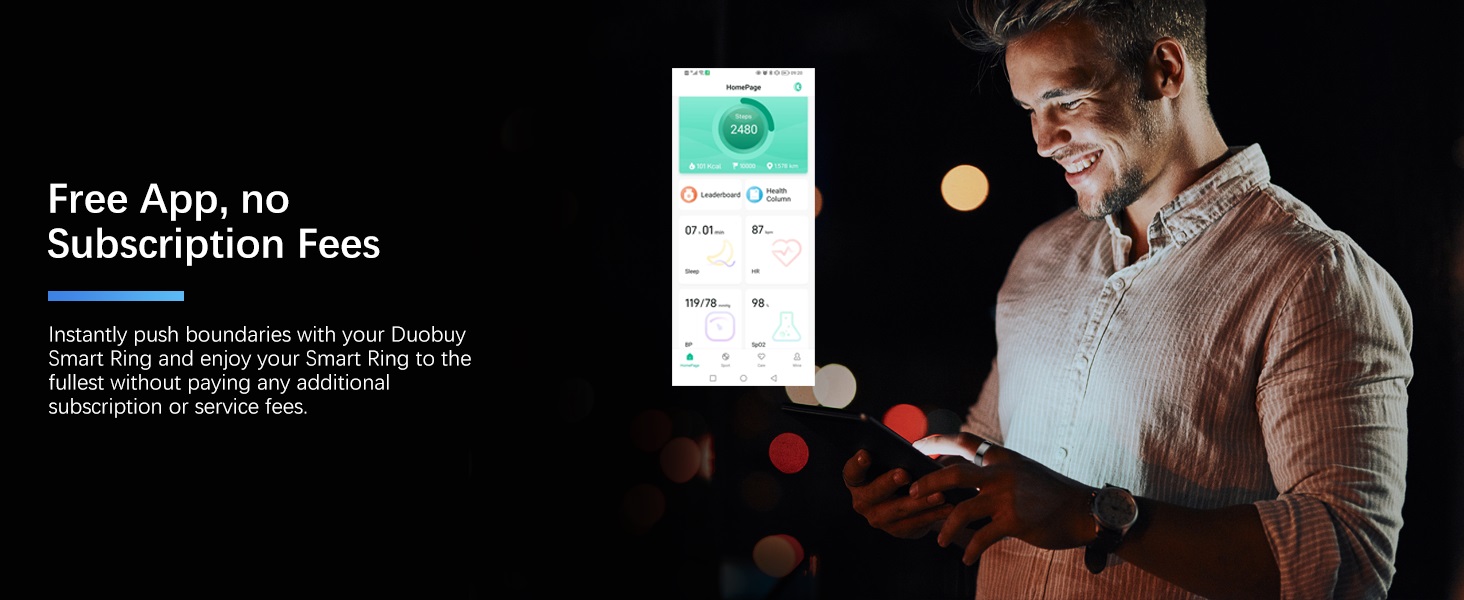 • 💎【بدون رسوم اشتراك】: بعد شراء الخاتم المناسب، يمكنك الاستمتاع بالوصول المجاني مدى الحياة إلى تطبيق الصحة الذكي. استمتع بالتتبع الصحي في الوقت الحقيقي حول الحلقة الذكية دون أي رسوم إضافية. لا توجد رسوم اشتراك لتنزيل التطبيق واستخدامه مدى الحياة.