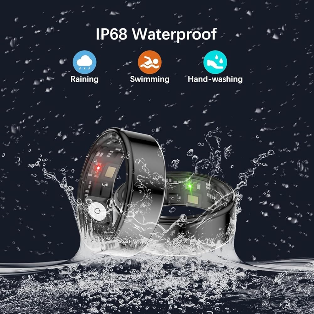 حلقات ذكية للنساء والرجال، حلقة للياقة البدنية مع معدل ضربات القلب، أكسجين الدم، معدل ضربات القلب، الإجهاد، متتبع النوم، متتبع الخطوات، بدون رسوم اشتراك، حلقة ذكية مقاومة للماء lP68 لهواتف iPhone وAndroid (أسود 13#)