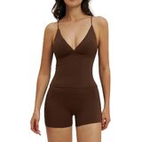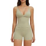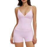 قميص جذاب برقبة على شكل حرف V: يتميز هذا القميص بدون أكمام للتمرين بتصميم أنيق على شكل حرف V، وأشرطة سباغيتي مرنة للغاية، وظهر مفتوح بأشرطة وبطانة قابلة للإزالة لتوفير الراحة والدعم المعتدل