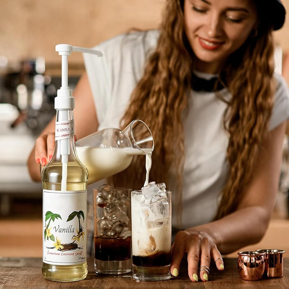 This white syrup pump is suitable for flavoring a wide range of drinks, such as coffee, chocolate liquor, orange juice, and lattes, allowing you to create your favorite drinks at home.