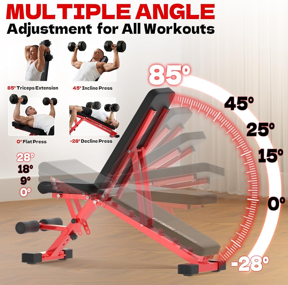 سعة الوزن 800 رطل: قادر على دعم ما يصل إلى 800 رطل بشكل آمن، تم تصميم مقعد الدمبل هذا الذي يبلغ وزنه 24 رطلاً لعشاق اللياقة البدنية على جميع المستويات - بدءًا من المبتدئين الذين يبحثون عن استخدام طويل الأمد إلى المستخدمين المتقدمين أو المحترفين الذين يقومون بترقية معداتهم - مما يوفر دعمًا موثوقًا ويمكن الاعتماد عليه لصالة الألعاب الرياضية المنزلية الخاصة بك