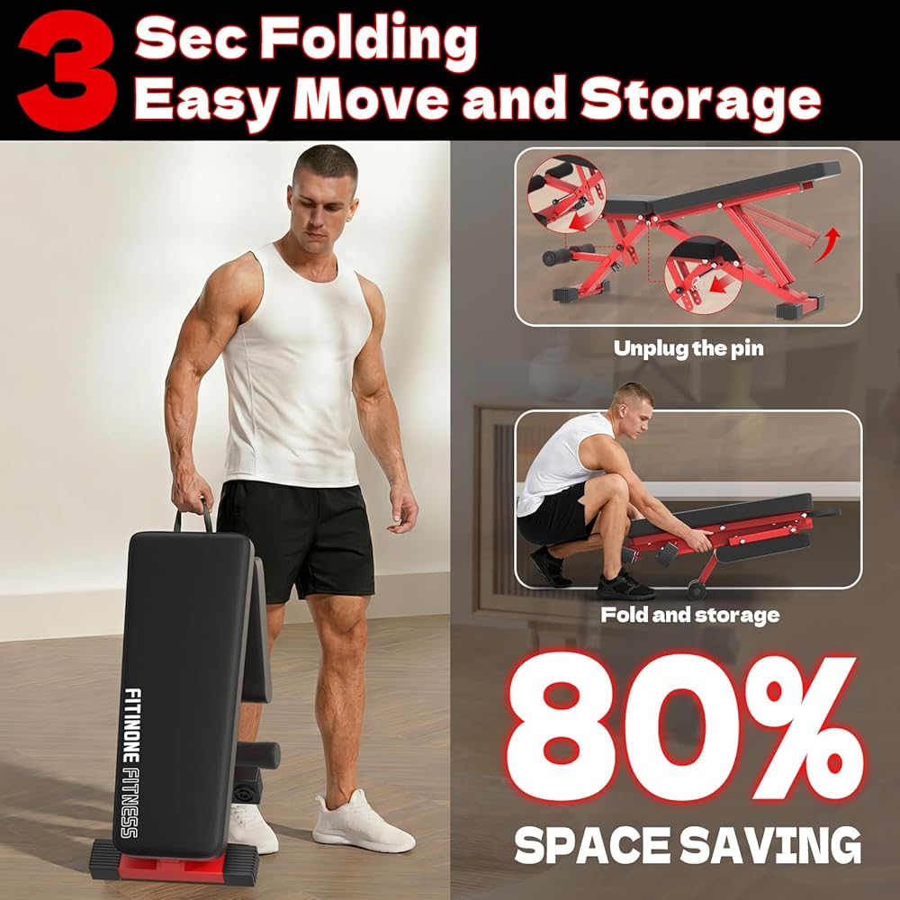 تصميم محمول وصغير الحجم: يتيح الطي السريع طي المقعد بحجم صغير، مما يقلل من حجمه بنسبة 80%. من السهل حملها وتخزينها، ويمكن وضعها بشكل أنيق بجانب الأريكة أو تحت السرير. مع عرض مطوي يبلغ 10 بوصات فقط (حوالي 25 سم)، فهو يناسب الشقق وصالات الألعاب الرياضية المنزلية الصغيرة