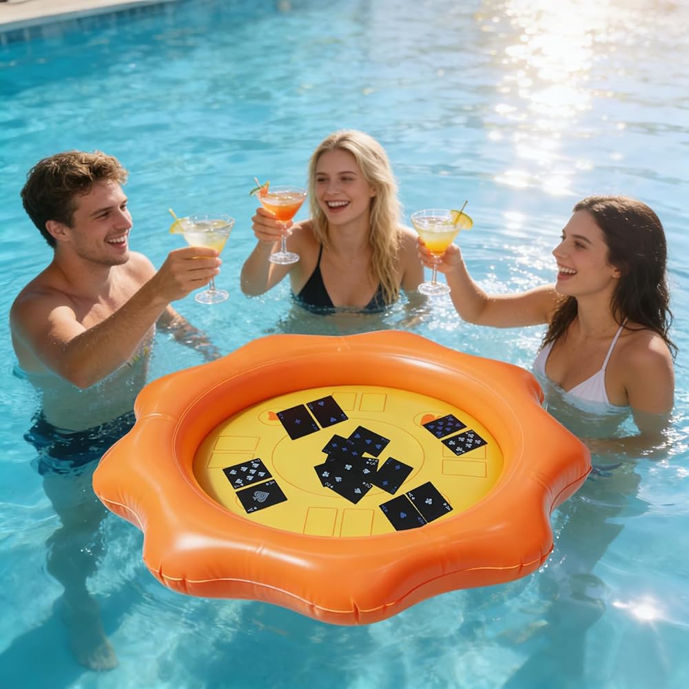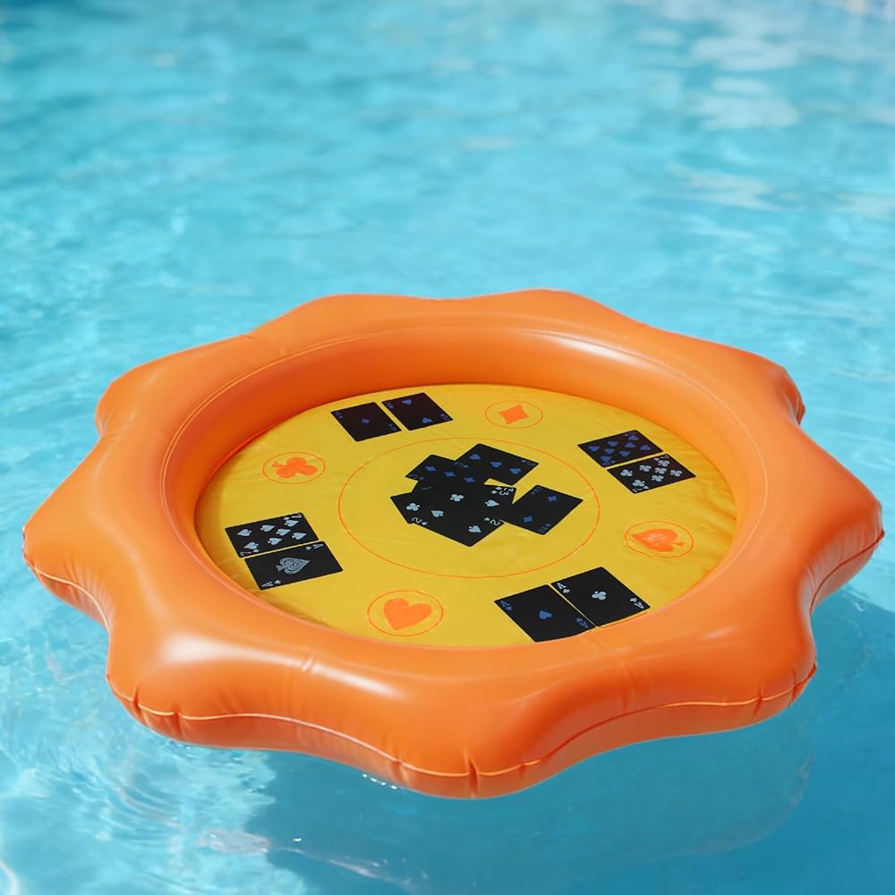 【Multi-functional Applications】 This floating pool game table isn't limited to card games. Besides its core board game function, its large, stable tabletop can serve as a water-based leisure platform, holding snack trays, sunscreen, books, and other items, creating a dedicated poolside relaxation corner for users to enjoy a pleasant break between water activities. During outdoor camping or lakeside vacations, it can also function as a temporary storage shelf, solving the problem of placing items by the water.