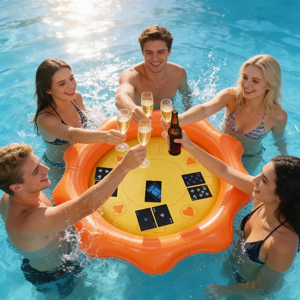 【Strong Social Attributes】 Designed specifically for adult social needs, the Floating Pool Game Table supports 3-5 people simultaneously. The versatility of the waterproof playing cards requires no changes to the game rules, easily meeting diverse social scenarios such as friend gatherings, business parties, and vacation groups. In cool environments like poolside and lakeside spots, players gather around a floating table to engage in strategic gameplay.
