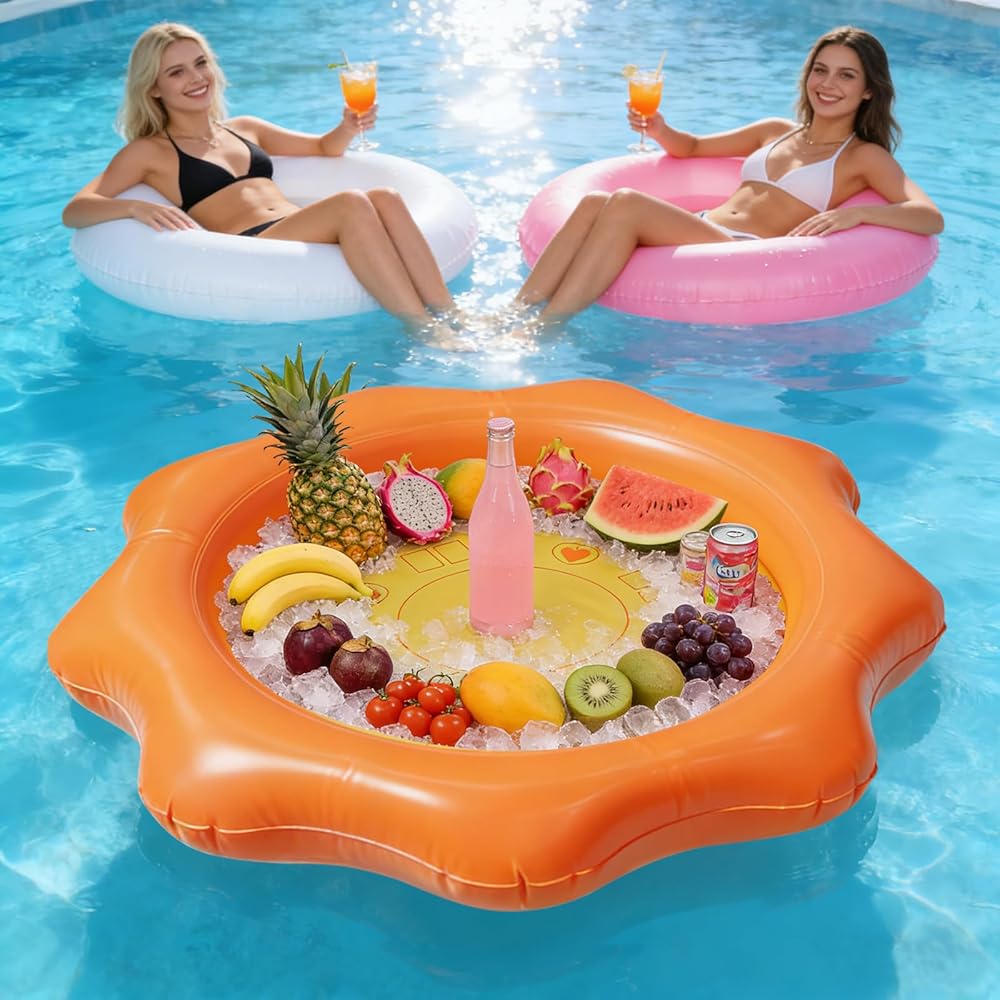 【Portable and Easy-to-Assemble Structure】Floating Pool Game Table Featuring a lightweight inflatable design, it's easy to carry to various adult leisure settings such as private pools, beach vacations, and outdoor camping. Assembly takes only 3-5 minutes and requires no complicated tools. After deflation, it folds and stores easily in a backpack or trunk, taking up minimal storage space. It's perfect for holding salads, drinks, fruit, beer, etc.
