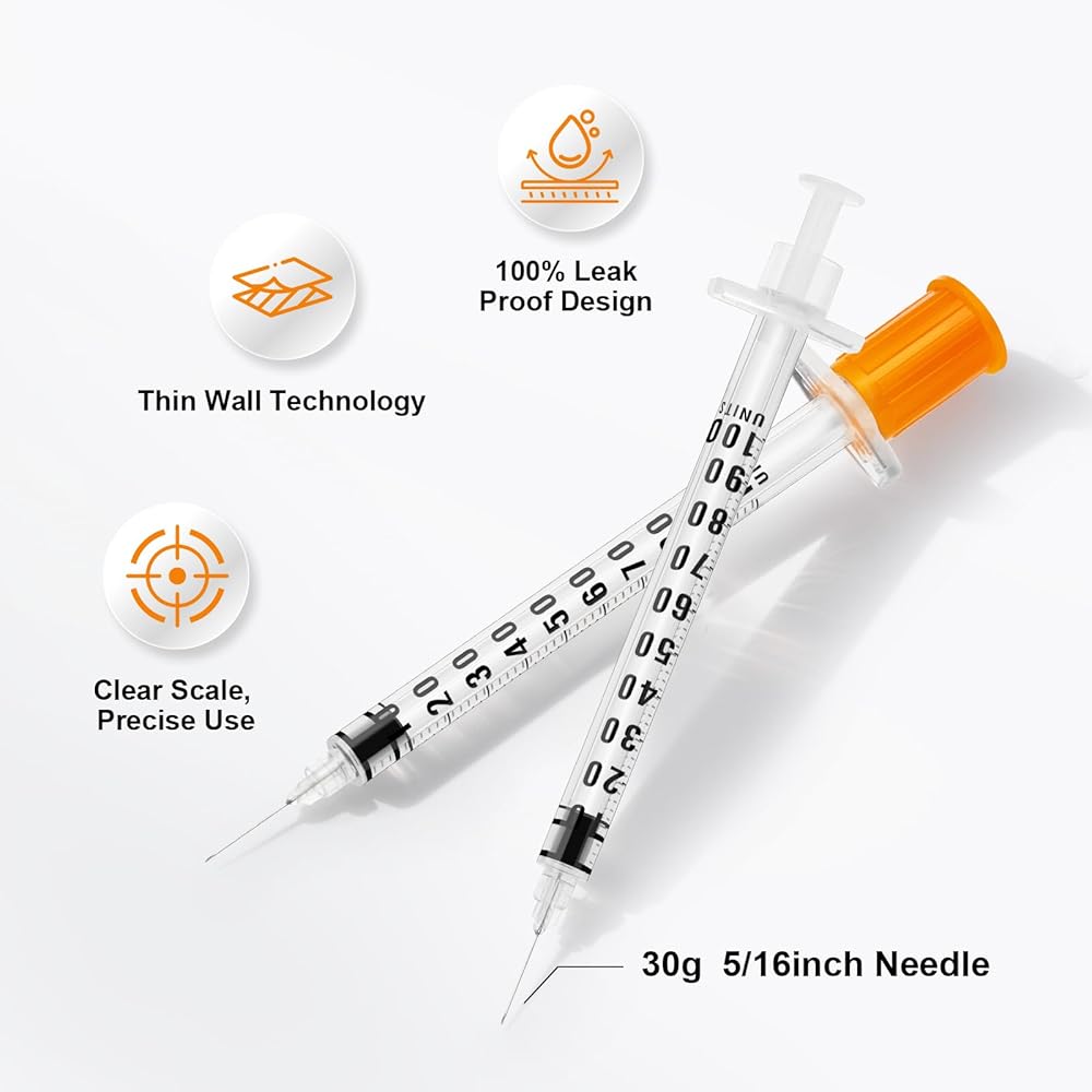 - Individually Package - 1ml 5/16inch 30G , each individually wrapped, Pack of 100.