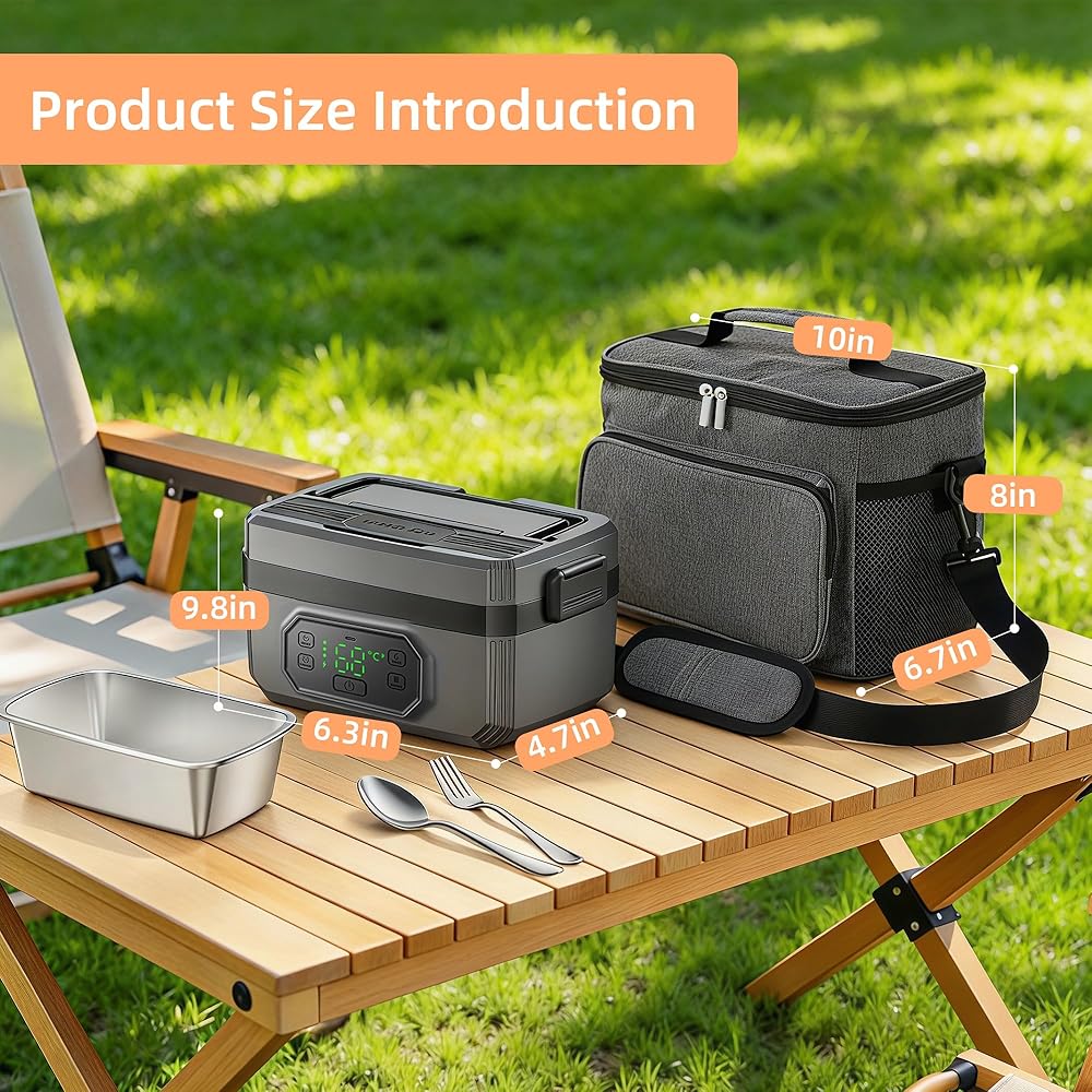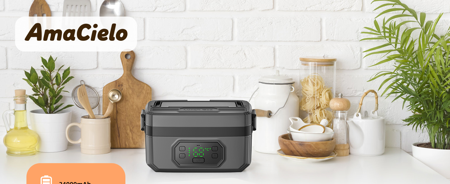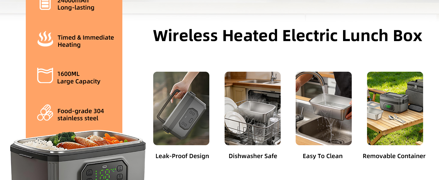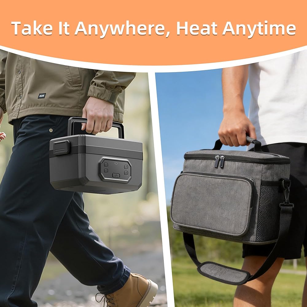 • 【تصميم ثوري لاسلكي ومحمول】قل وداعًا للبحث عن المنافذ! يتميز صندوق الغداء المُدفأ اللاسلكي هذا ببطارية مدمجة عالية السعة تبلغ 24000 مللي أمبير في الساعة، مما يسمح لك بالاستمتاع بوجبة دافئة وصحية في أي مكان - من المكتب إلى موقع العمل. بفضل المقبض المحمول والراحة اللاسلكية، فهو جهاز تدفئة الطعام المحمول المثالي للسيارة والتخييم والمشي لمسافات طويلة والسفر.