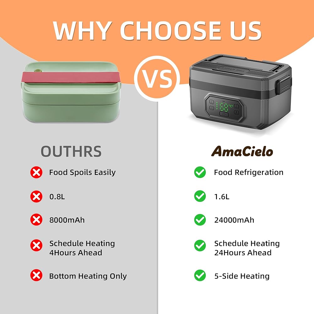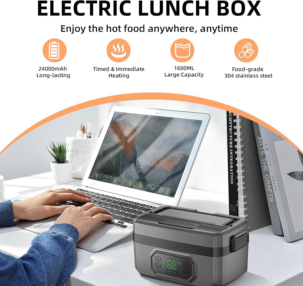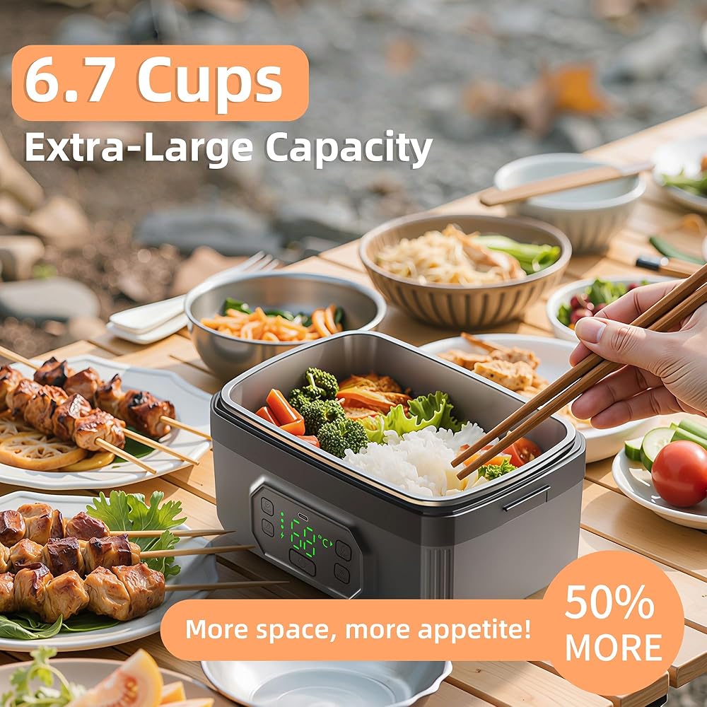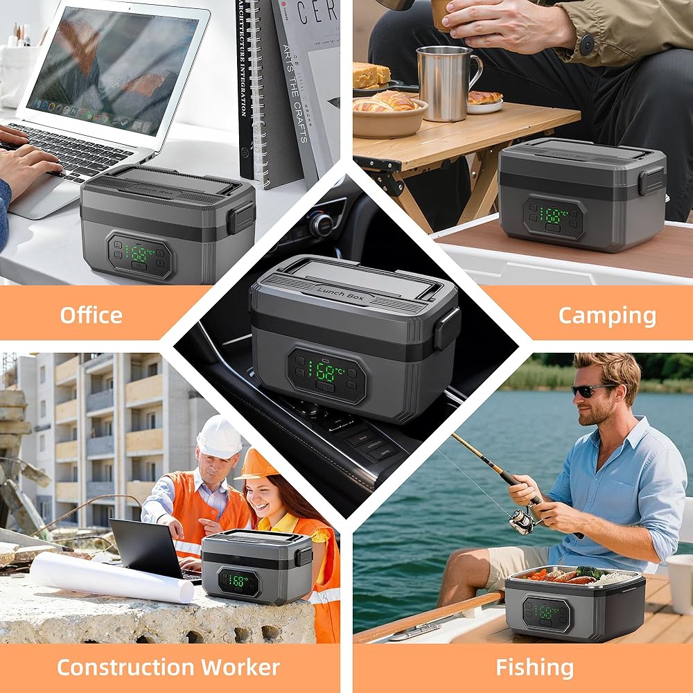 • 【تصميم ثوري لاسلكي ومحمول】قل وداعًا للبحث عن المنافذ! يتميز صندوق الغداء المُدفأ اللاسلكي هذا ببطارية مدمجة عالية السعة تبلغ 24000 مللي أمبير في الساعة، مما يسمح لك بالاستمتاع بوجبة دافئة وصحية في أي مكان - من المكتب إلى موقع العمل. بفضل المقبض المحمول والراحة اللاسلكية، فهو جهاز تدفئة الطعام المحمول المثالي للسيارة والتخييم والمشي لمسافات طويلة والسفر.