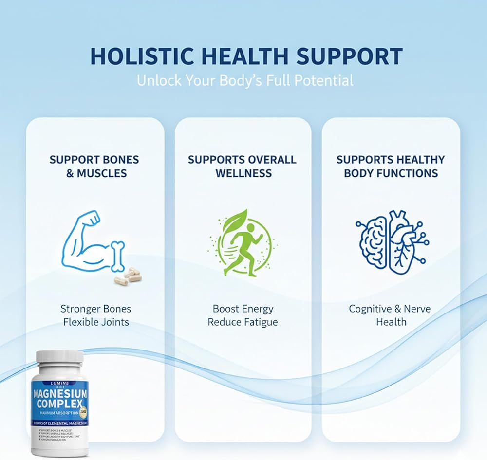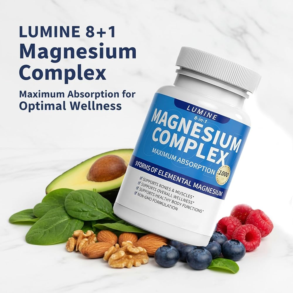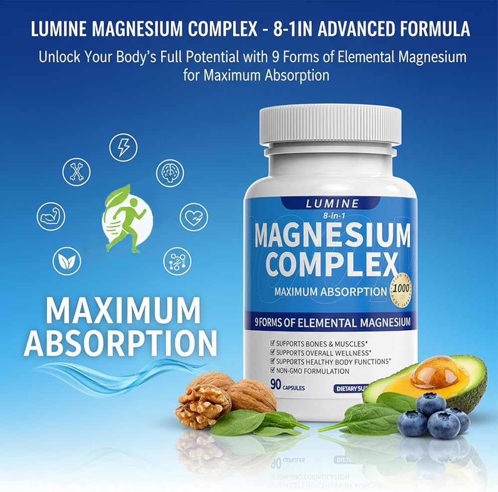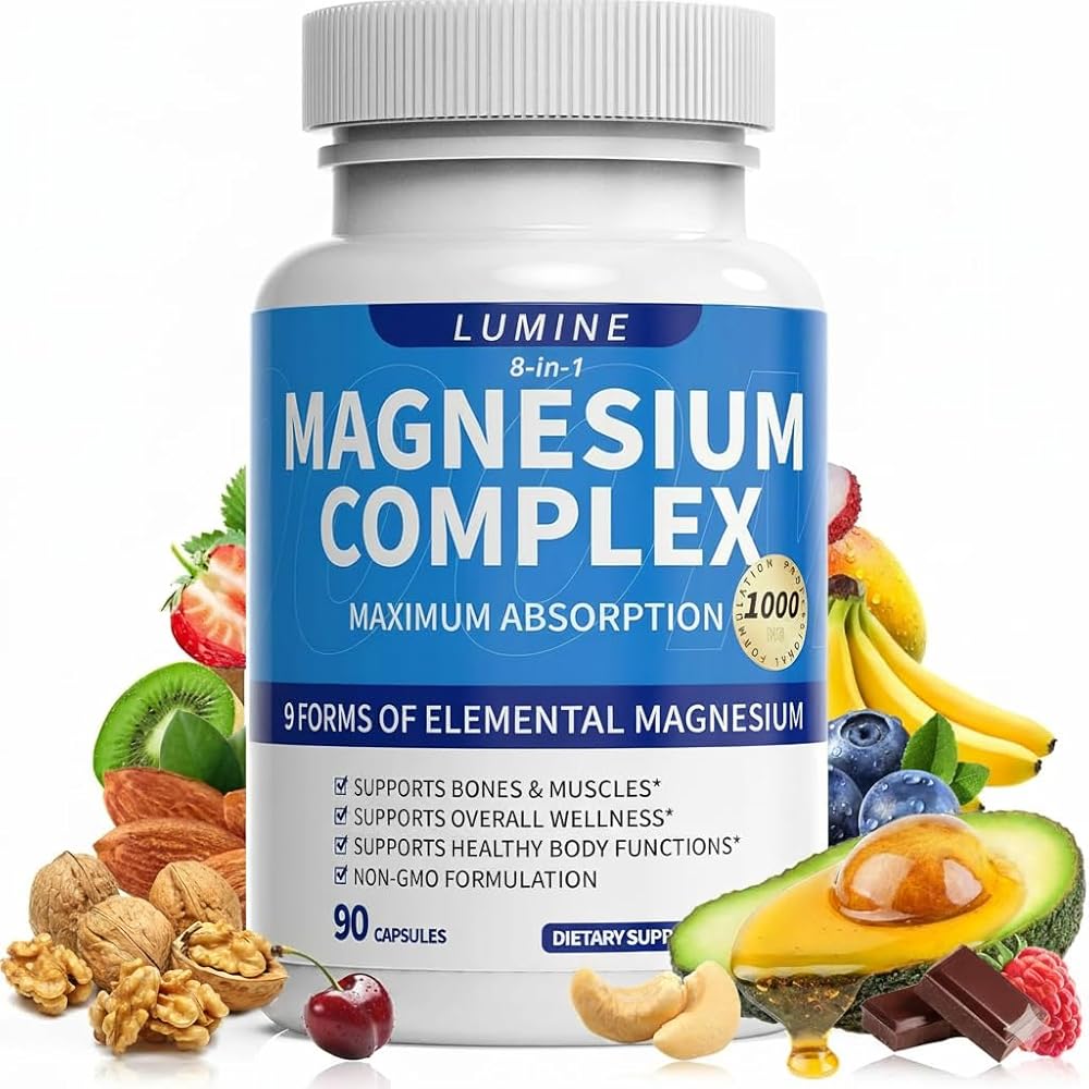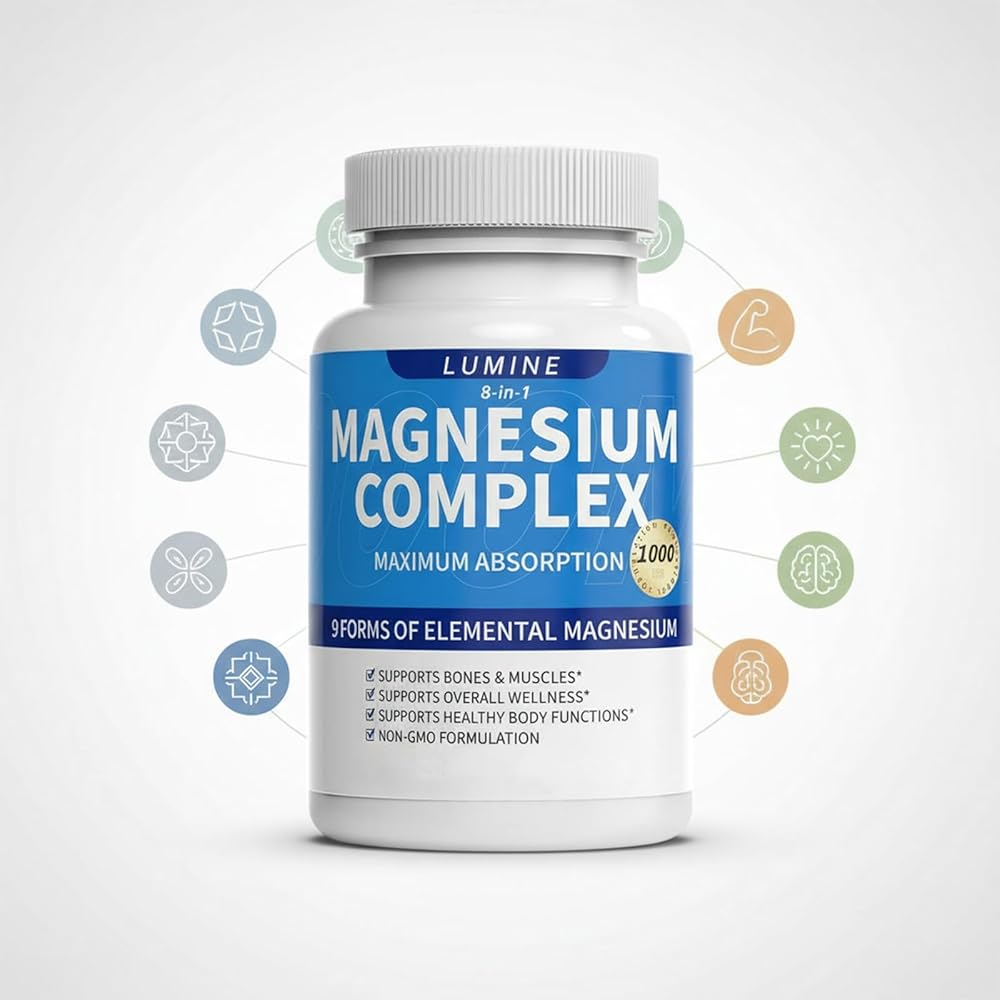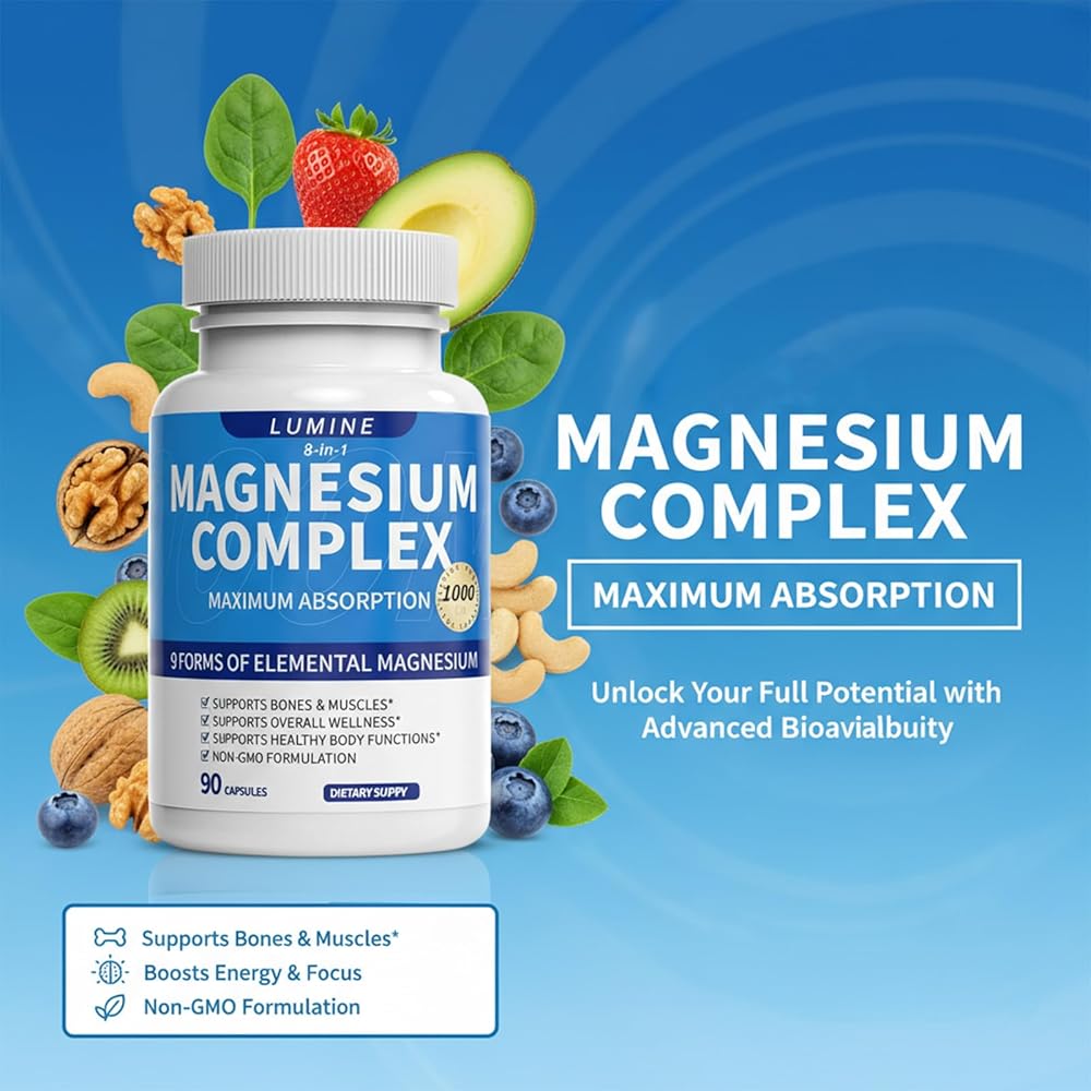 Eight Forms of Magnesium for Comprehensive Support Our supplement combines magnesium citrate, glycinate, malate, and five other highly-absorbable forms. This blend is designed to support the body's natural need for this essential mineral through multiple pathways for daily wellness.