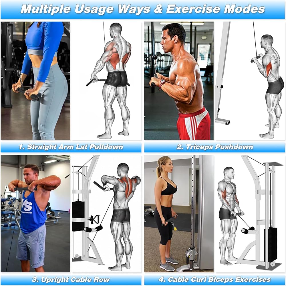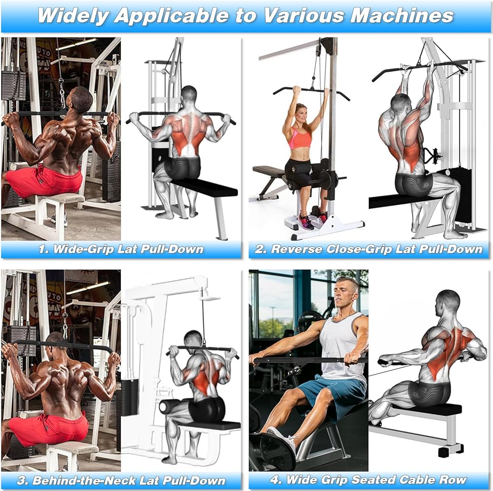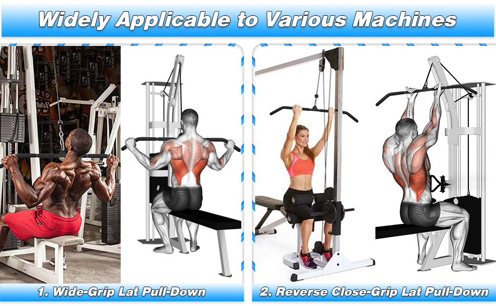 💪【تطبيقات متعددة】 متصلة بنظام بكرة الكابل، وآلة السحب للأسفل، وآلة الصالة الرياضية، وآلة الأثقال، ورف الطاقة ورف القرفصاء. يمكنك ممارسة التمارين على العضلة ذات الرأسين والعضلة ثلاثية الرؤوس والظهر والكتفين والبطن والبطن.