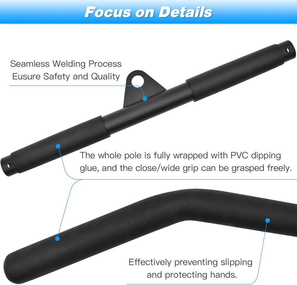 💪【مادة ممتازة】 الحد الأقصى للحمل هو 330 رطلاً، مصنوع من الفولاذ الصلب، ومطلي بطلاء أسود، ويستخدم مقابض مغموسة من مادة PVC التجارية الخاصة بصالة الألعاب الرياضية وهي مقاومة للاهتراء وغير قابلة للانزلاق. توفر قبضة قوية تتوافق مع بيئة العمل، مع تعزيز السلامة والراحة أثناء ممارسة التمارين اليومية.