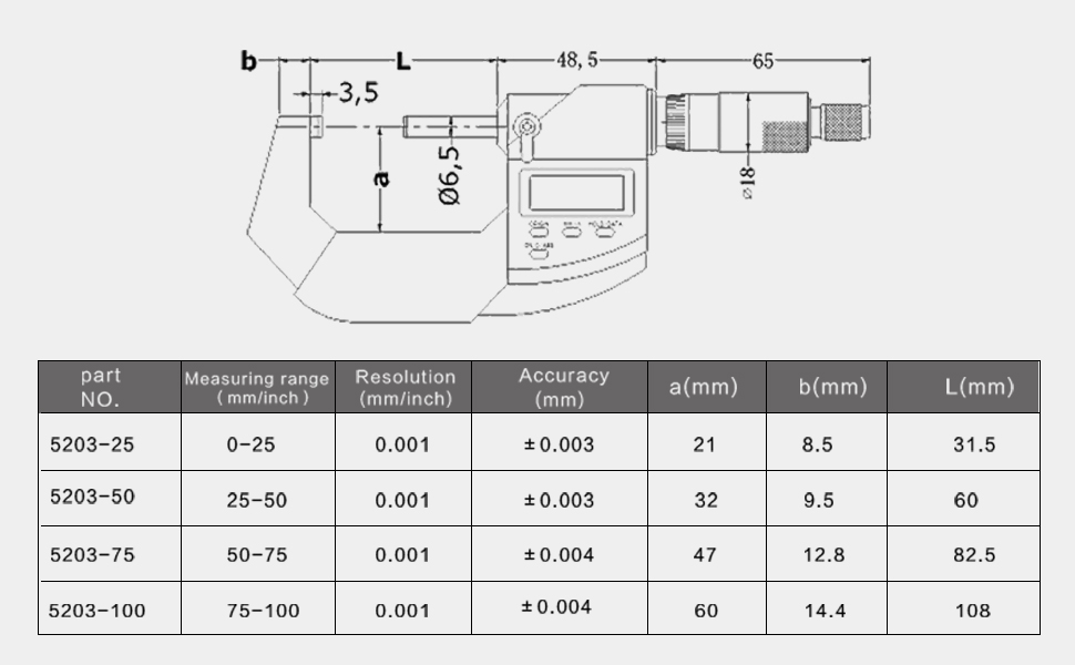 - 【نطاق القياس 】 النطاق: 0-25 مللي متر/0-1 ''، الدقة: 0.001 مللي متر/0.00005 بوصة ؛ الدقة: ± 0.003 مللي متر/0.0001''