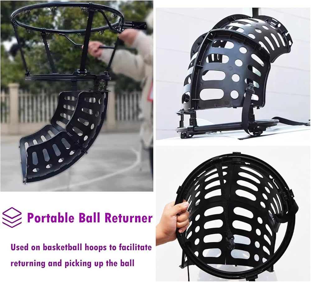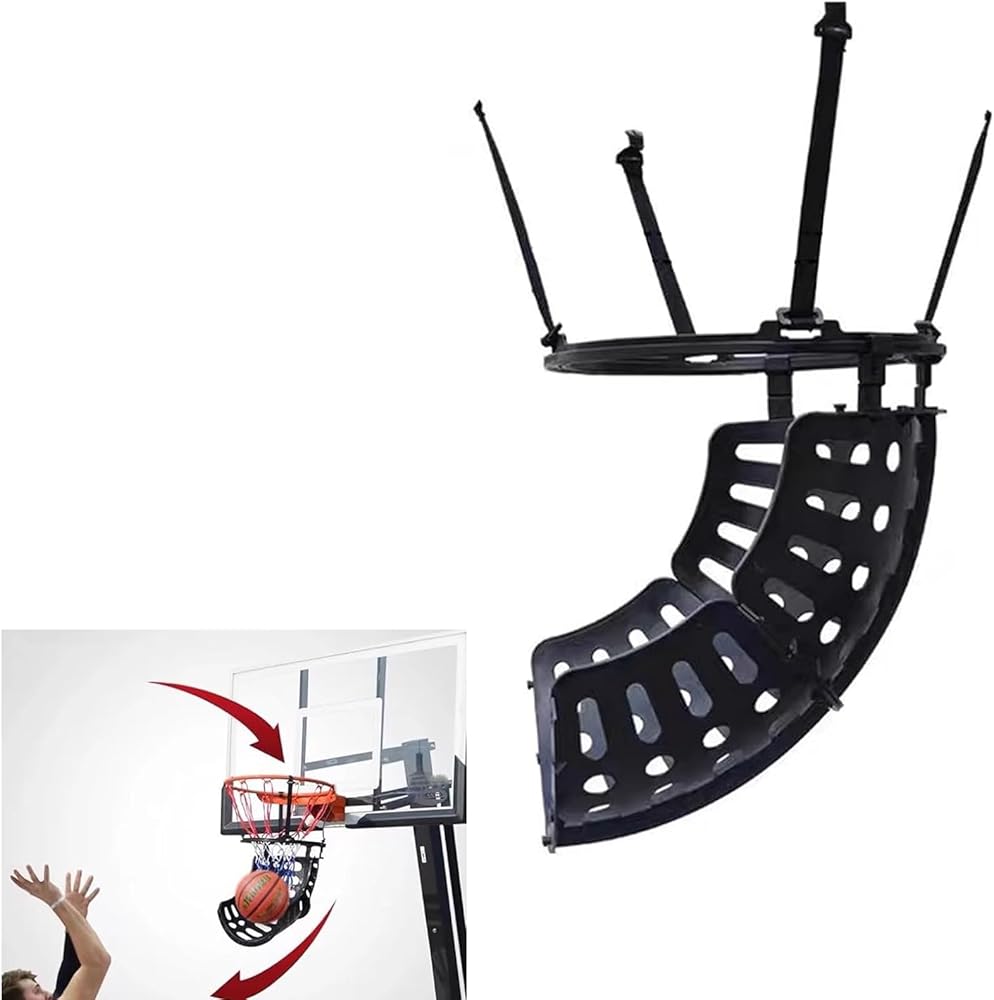 Basketball Hoop Returner The part of our basketball return system connected to the rim is fixed with four equidistant plastic hooksThe And heightDesign makes it suitable for most sizes of basketball hoop and is not easy to fall off and moveThe clip design without additional tools allows you easily and quickly to install or the ball returner giving you more time for shooting practice.