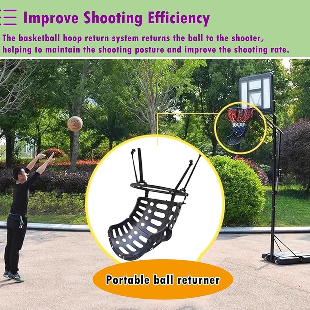 The basketball hoop return system is specially designed for practice shooting efficiency and technical improvIt returns the ball to the shooter helping the shooter maintain shooting form and improve his shooting percentage.