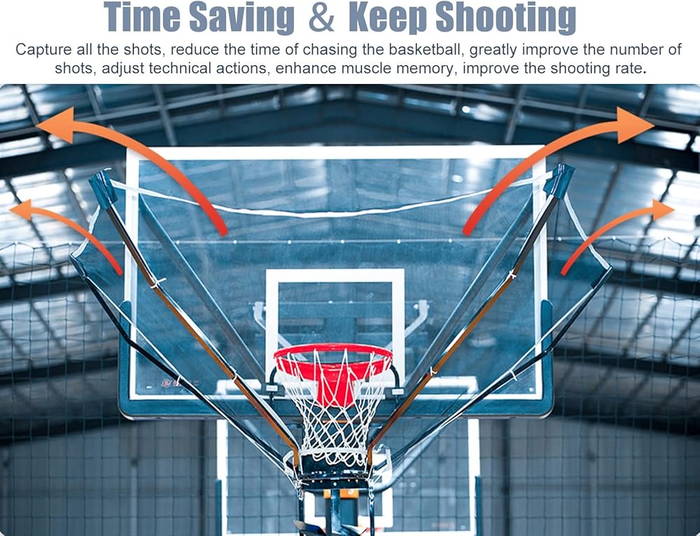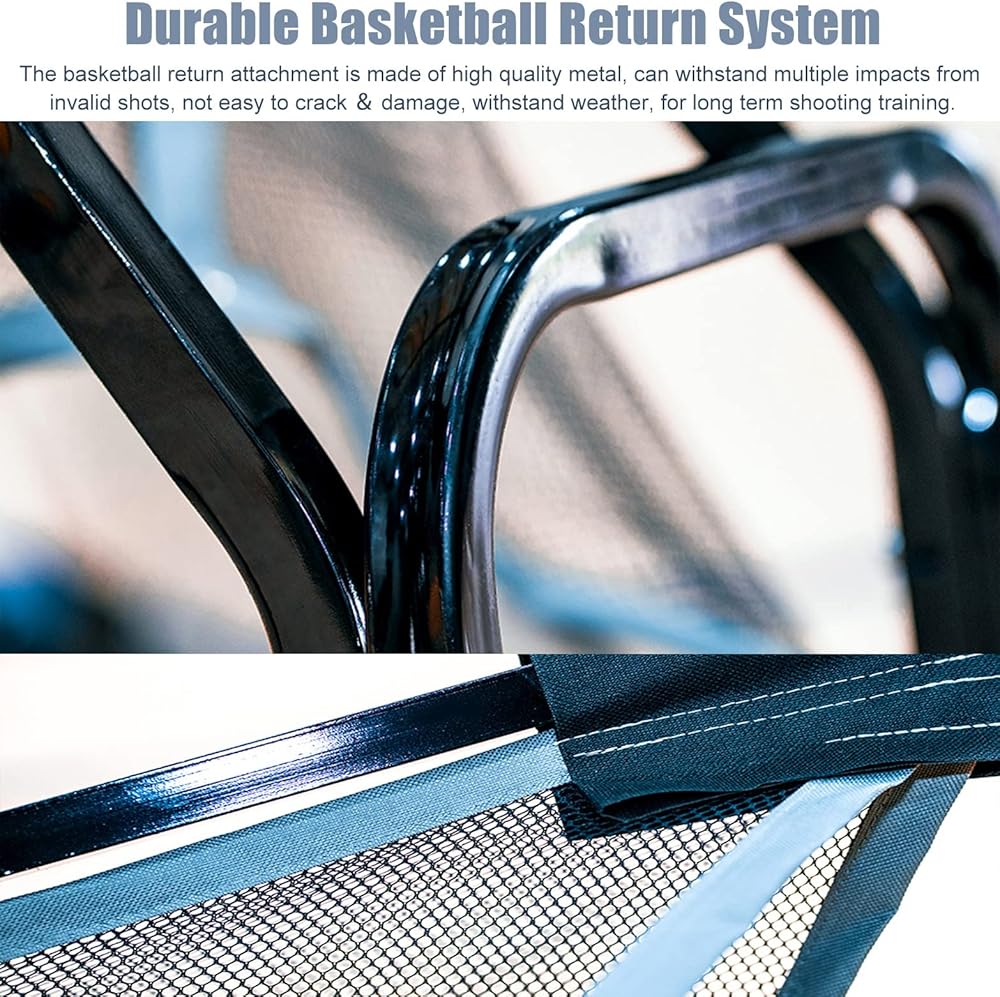 The basketball return attachment is made of high quality metal can withstand multiple impacts from invalid shots not easy to crack & damage withstand weather for long term shooting training.