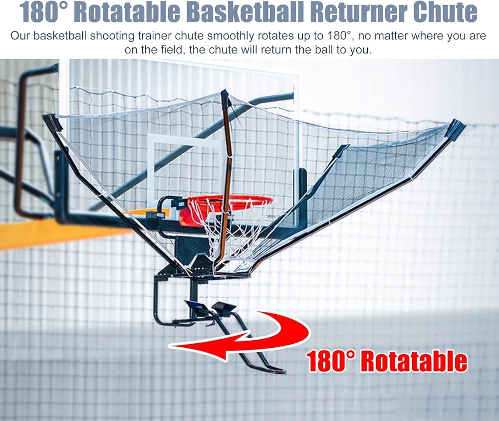 Our basketball shooting trainer chute smoothly rotates up to 180° no matter where you are on the field the chute will return the ball to you.