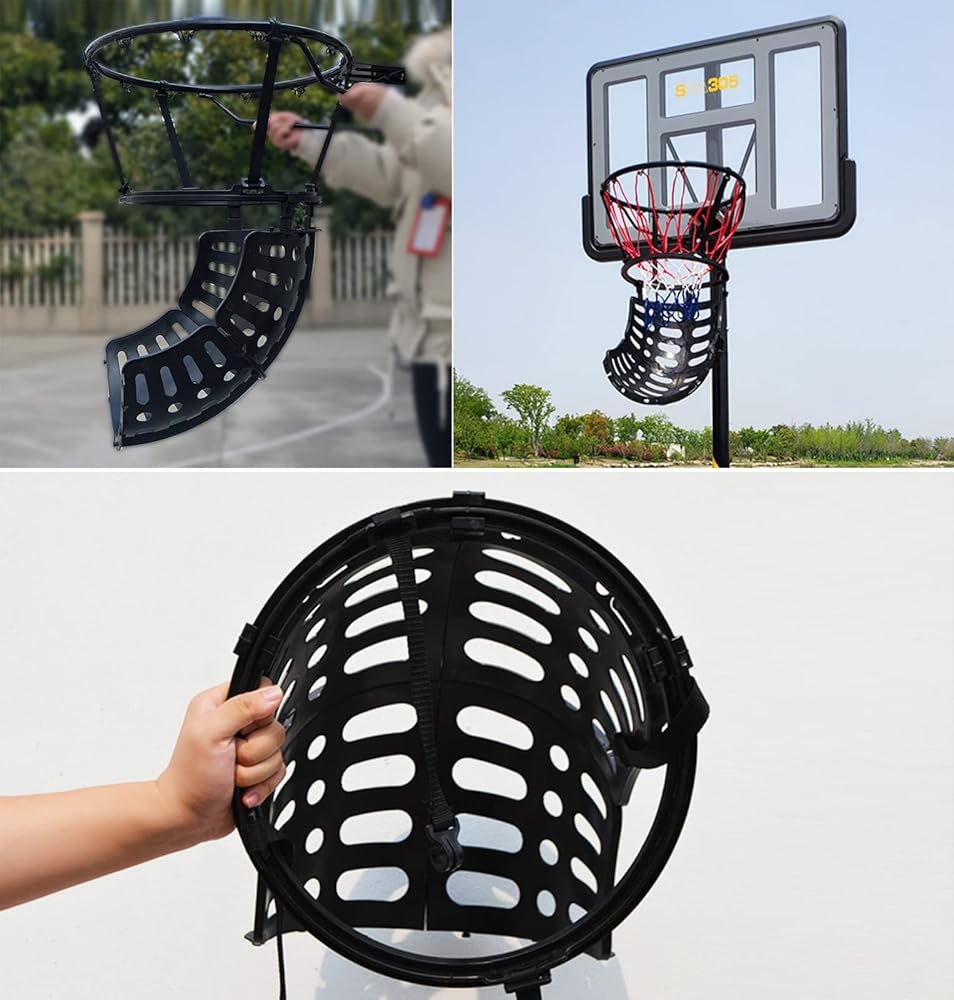 • Basketball Hoop Returner Our basketball shooting trainer chute smoothly rotates up to 360° no matter where you are on the field the chute will return the ball to you.