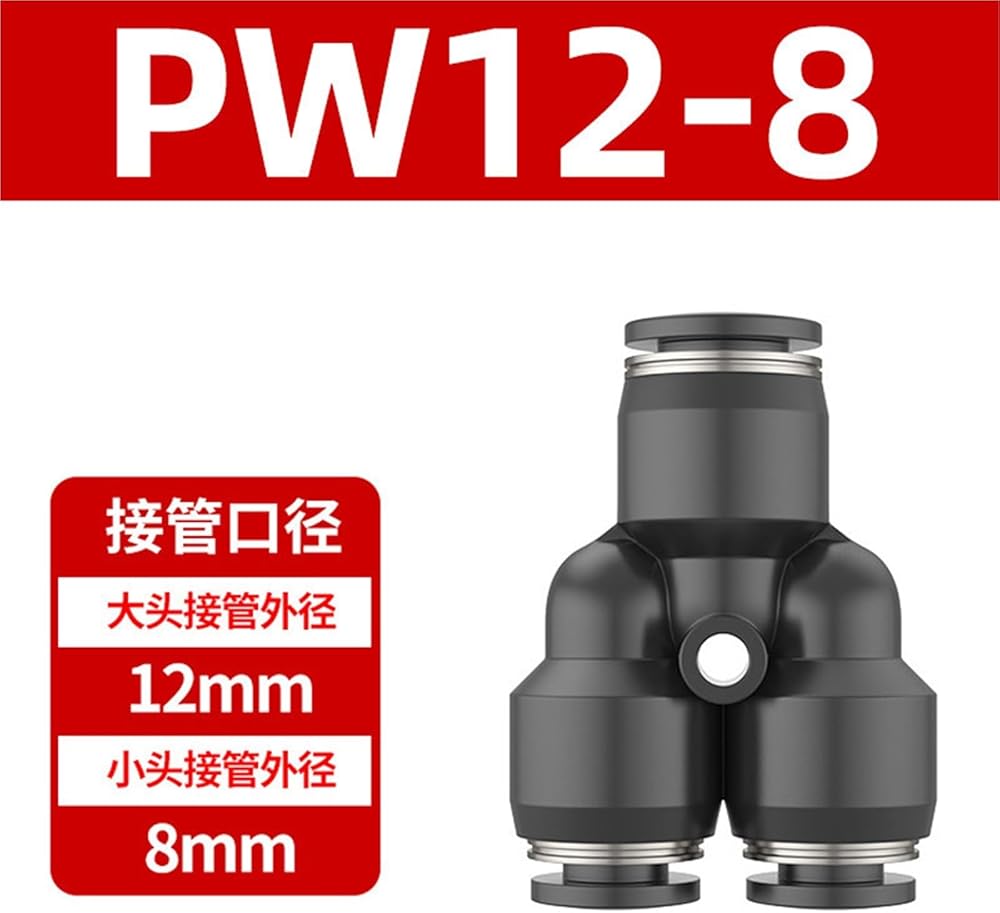 موصل سريع PY نوع تي شيرت 4/6/8 مقابس قطر متغير PW تحويل بلاستيكي 8-6/10-8 توصيل أنبوب هوائي 1 قطعة(黑色PN12-8(高端))