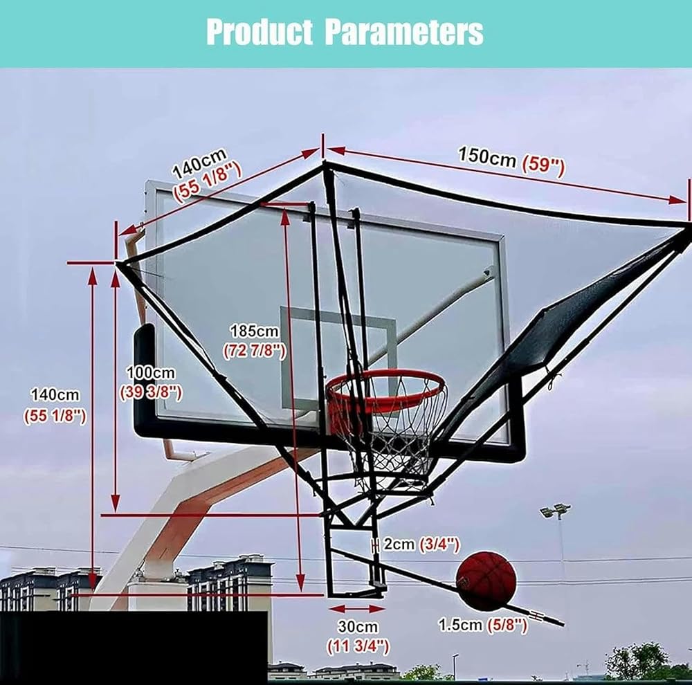 Basketball Rebounder Manufacturer:Basketball Rebounder(Ball ReturnTraining Accessories)Whether you're a beginner learning basketball or a professional athlete looking to practice your shooting skills our ball return automatic nety is the ideal choice to increase your training time capture all the shots reduce the time of chg the basketball greatly improve the number of shots enhance muscle memory improve the shooting rate improve the efficiency of shooting training. Features steel material impact-resistant wear-resistant and load-bearing - Save the ball pickup step improve training efficiency - 180rotation suitable for shooting at various angles - Increase the number of shots about 3-4 times improve the short time of high load exercise - Easy to install and disassemble and carry Parameters - Material: steel and high-density woven mesh - Size: L x W x H 150cm x 140cm x 180cm/59in x 55in x 73in Weight: 20kg(11lbs)Included - 1x basketball returns net(with installation complete kit)Note: - If you have any specific product queries please contact ours - Manual measur product size may exist 1 2 cm error - Products are taken in kind but due to light equipment shooting angle and resolution of the computer there will be small color difference in kind prevail