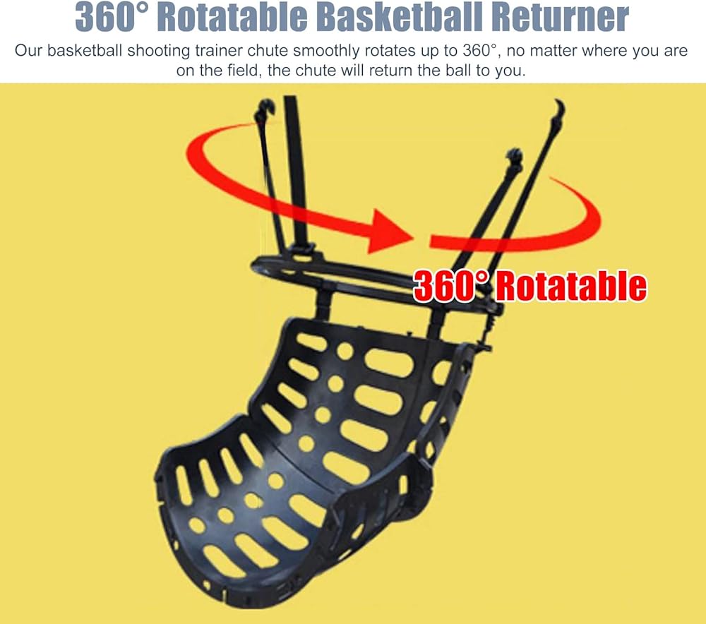 Our basketball shooting trainer chute smoothly rotates up to 360° no matter where you are on the field the chute will return the ball to you.