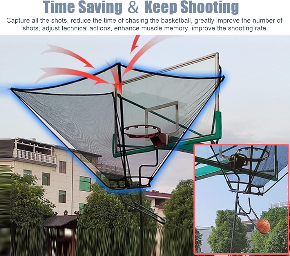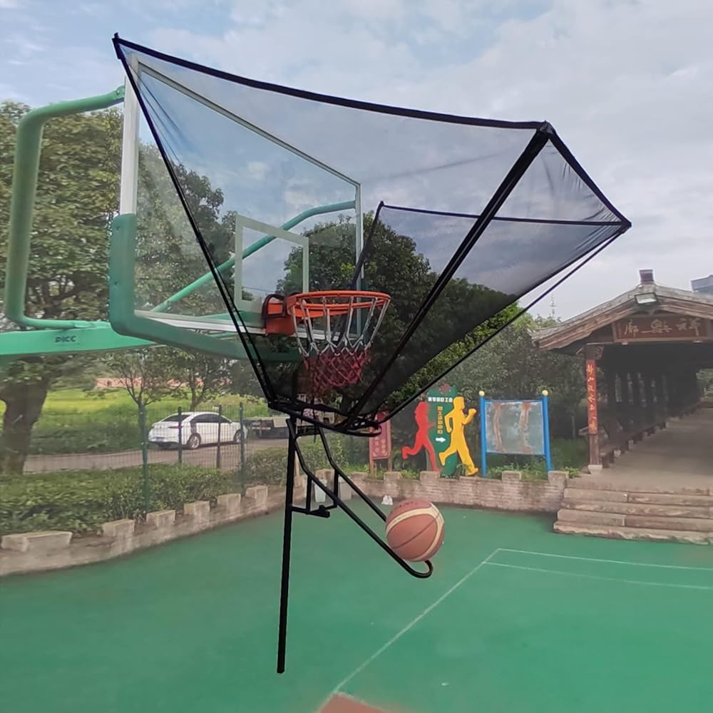Basketball Hoop Returner Our basketball shooting trainer chute smoothly rotates up to 180° no matter where you are on the field the chute will return the ball to you.