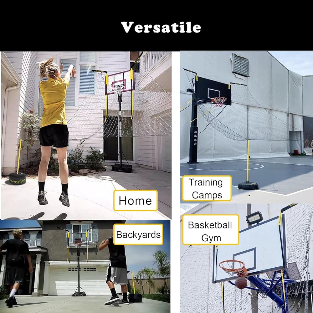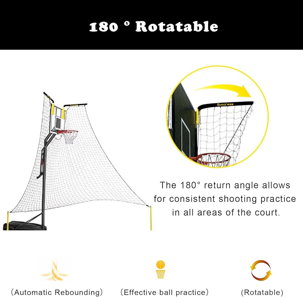 Time-saving --- The basketball rebounder is designed for practice efficiency and technique improvementThe basketball hoop return system will return the ball to shooter help the shooter maintain the shooting state and adjust technical actions.Allows you to practice your 3-pointers jump shots free-throw long shots and more! perfect for solo practice or two guys stationary shooting practice.