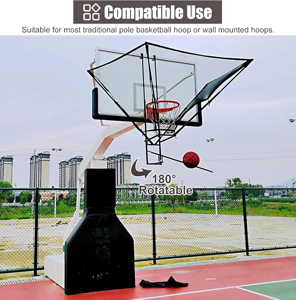 Large Net & 180 Rotatable Design: Our basketball shot returner can be rotated 180°Large basketball backboard net return device can pass the ball back to the player even if the basketball is missed.