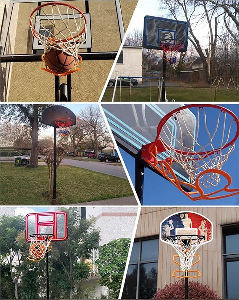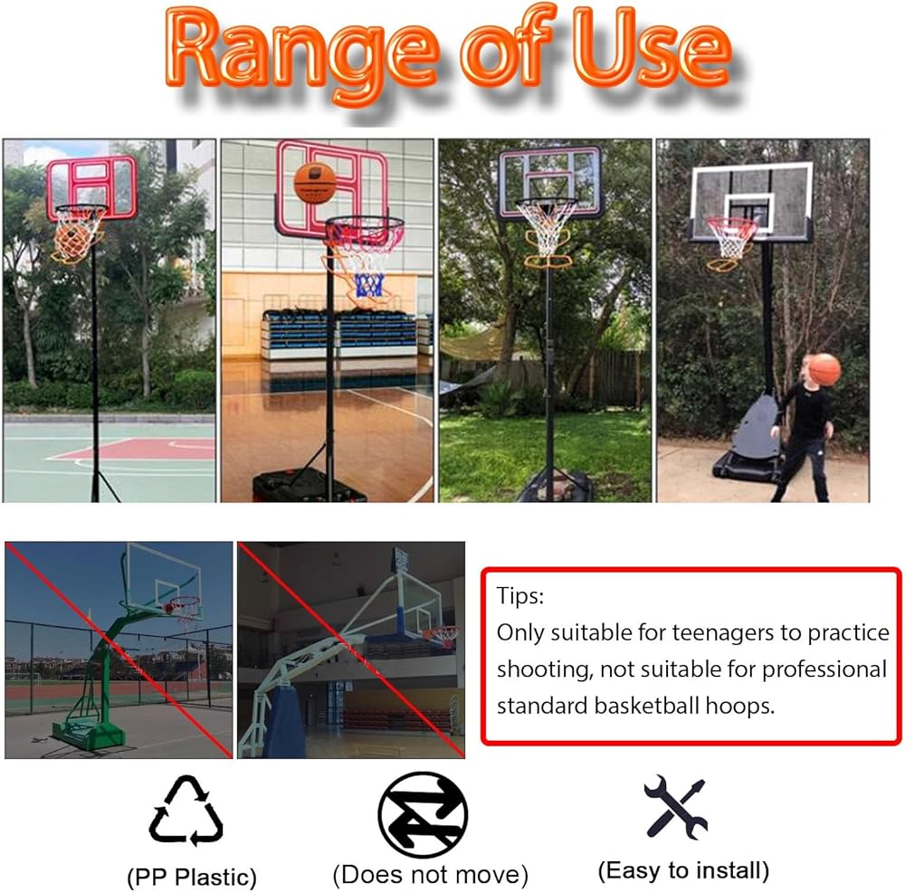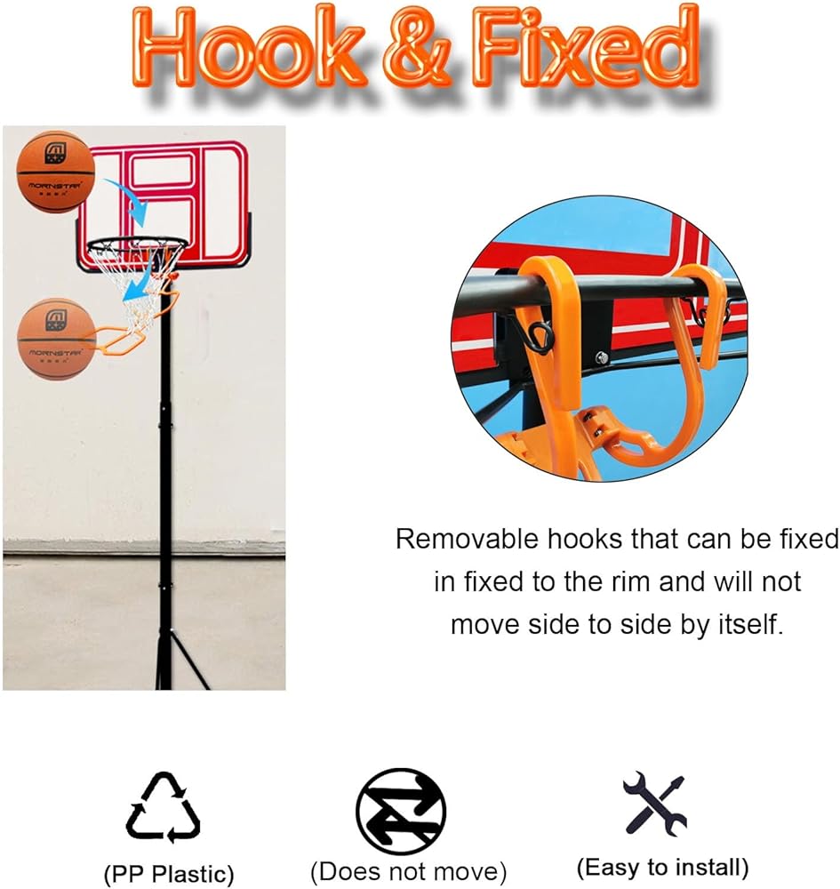Hooks & Fixed -- Basketball rebounder is designed for easy and convenient hanging mounting the hooks are fixed on both sides of the rim won't move easily so you can hit twice as many balls in one practice.