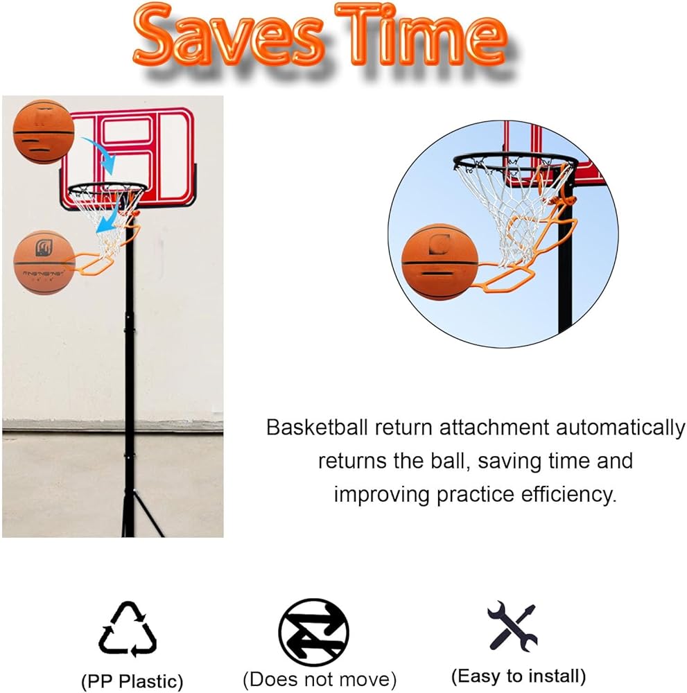 Time-saving --- Basketball return attachment can reduce the time of chasing the basketball improve the efficiency of shooting trainingThe positive side is that you will be able to shoot about twice as many shots in a session because you will not have to chase down the made shotsEasily put up 40 shots in 2 minutes using two basketballs.