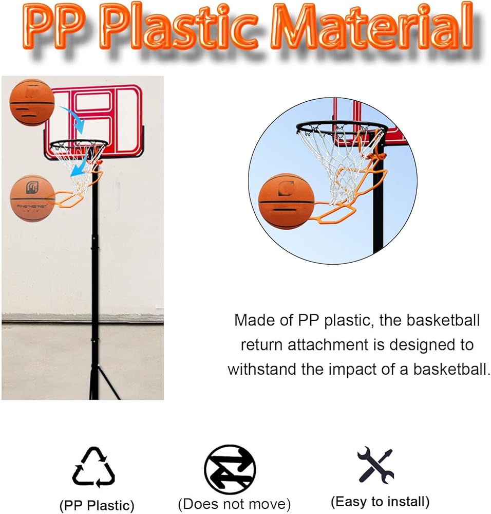 PP Plastic Material --- Basketball return attachment is made of PP plastic which can withstand all kinds of strong impacts from shooting and is not afraid of the wind and sun which is suitable for long-term shooting training.