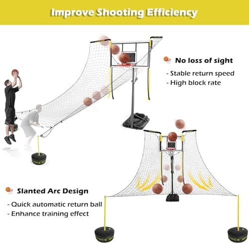 Improve Shooting Efficiency:Shooting practice with our basketball returner can increase the number of shots in one hour to 500! Our rebounder attachment helps players maintain their shooting gesture strengthen their shooting muscle memory and improve their shooting percentageGreat for solo practice or two-person shooting practice.