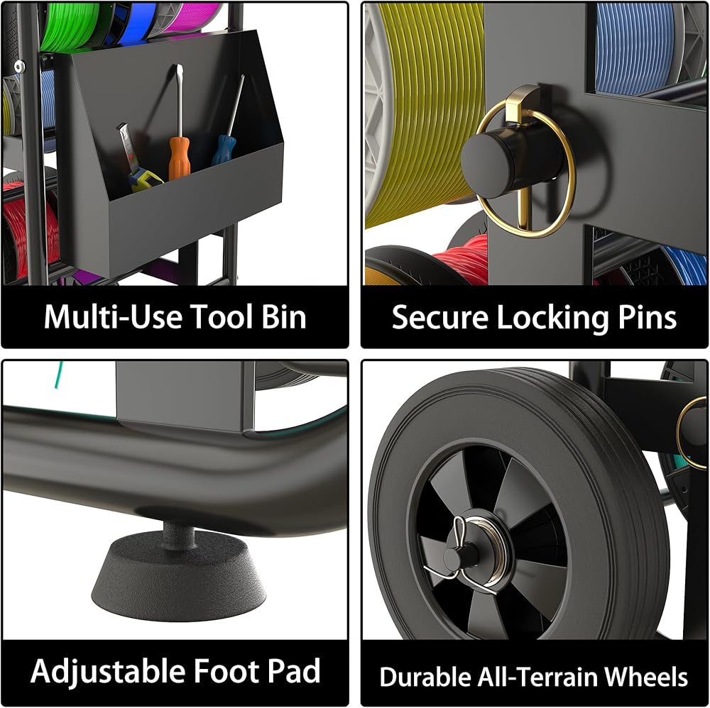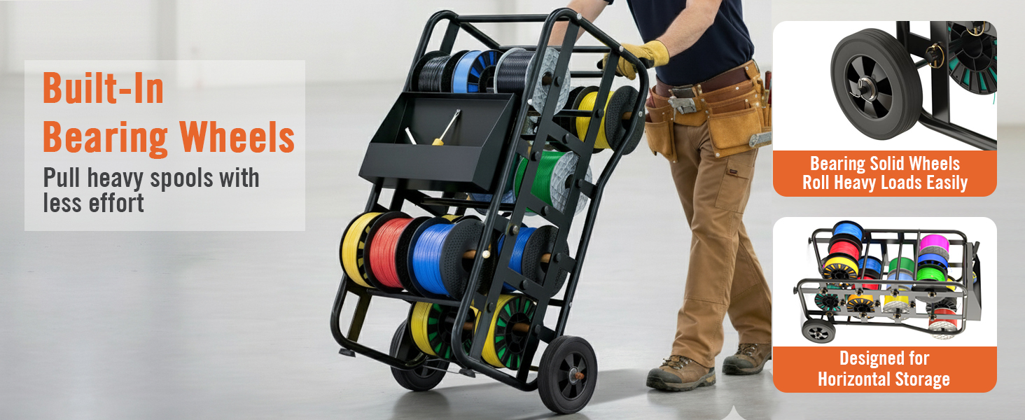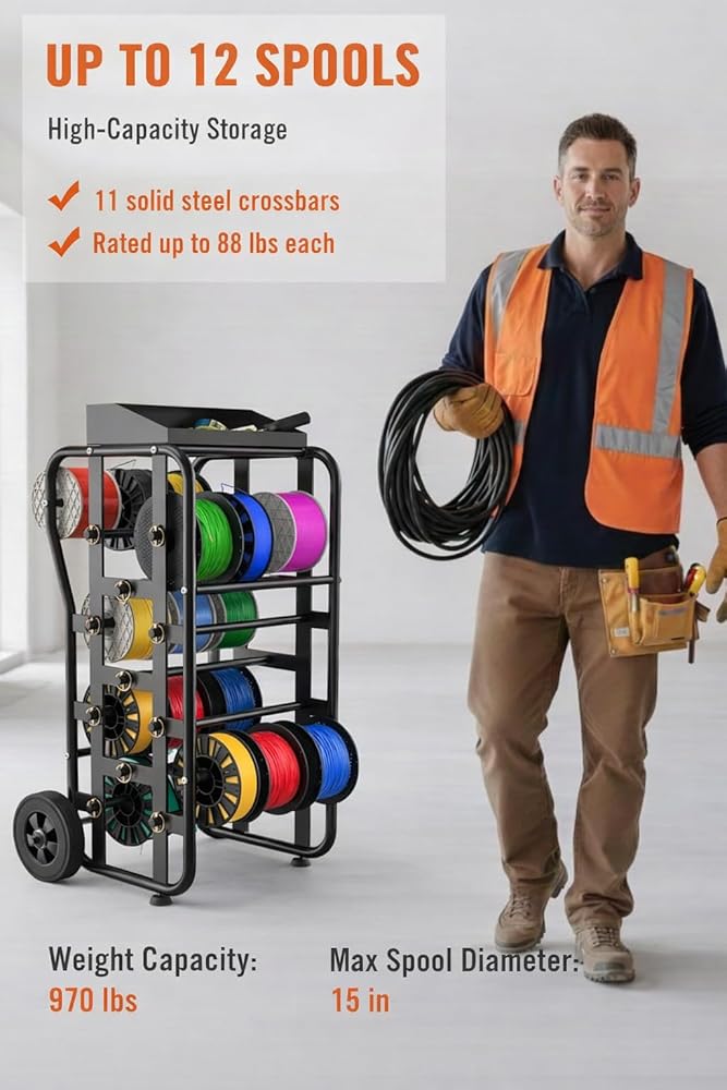 • سعة كبيرة وتخزين متعدد البكرات يتميز بتصميم متعدد الطبقات يحمل عدة مكبات سلكية أو بكرات كابلات أو لفات خيوط طباعة ثلاثية الأبعاد في وقت واحد. ينظم بسهولة أحجام وأنواع مختلفة من الكابلات لتحقيق أقصى قدر من الكفاءة ومساحة عمل مرتبة