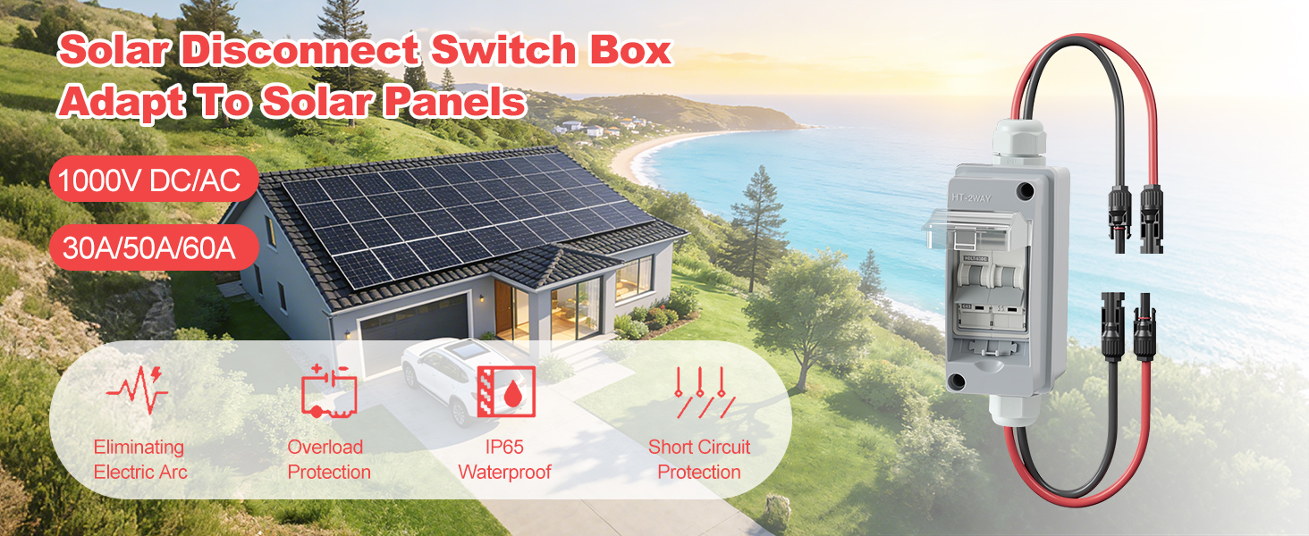 • IP65 CIRCUIT BRECER DIN RAIL BOX: مفتاح توصيل سريع للوحة الشمسية - تصميم متكامل للذكور والإناث، التوصيل والتشغيل، لا حاجة للتمييز بين الأطراف. مفتاح فصل اللوحة الشمسية مصنوع من مواد عالية الجودة وملف نحاسي سميك للتوصيل الفائق. مقبض تشغيل موسع لتسهيل التبديل. يوفر الغطاء الشفاف رؤية واضحة لحالة الجهاز. مفتاح فصل اللوحة الشمسية 60 أمبير، حلقة سيليكون مانعة للتسرب مدمجة مقاومة للماء، تصنيف حماية IP65، لا خوف من الاستخدام الخارجي