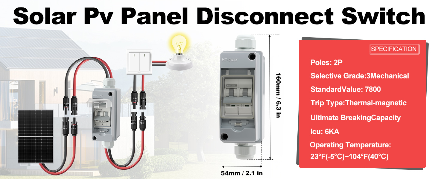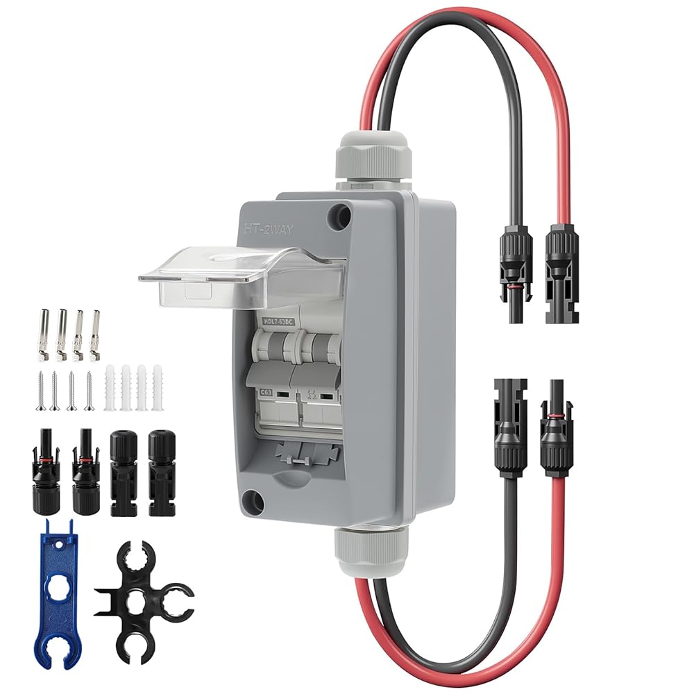 • خدمة ممتازة لما بعد البيع: إذا واجهت أي مشاكل مع المنتج عند استلامه، فيرجى عدم التردد في الاتصال بفريق دعم العملاء لدينا - فنحن هنا لنقدم لك خدمة ممتازة. يمكنك اختيار قواطع الدائرة لدينا بثقة لجميع احتياجات الحماية الكهربائية الخاصة بك. تتضمن الحزمة: 1x قاطع دائرة مفتاح فصل، 4x براغي، 4x أطراف توصيل، 2x موصلات شمسية، 2x مفتاح ربط