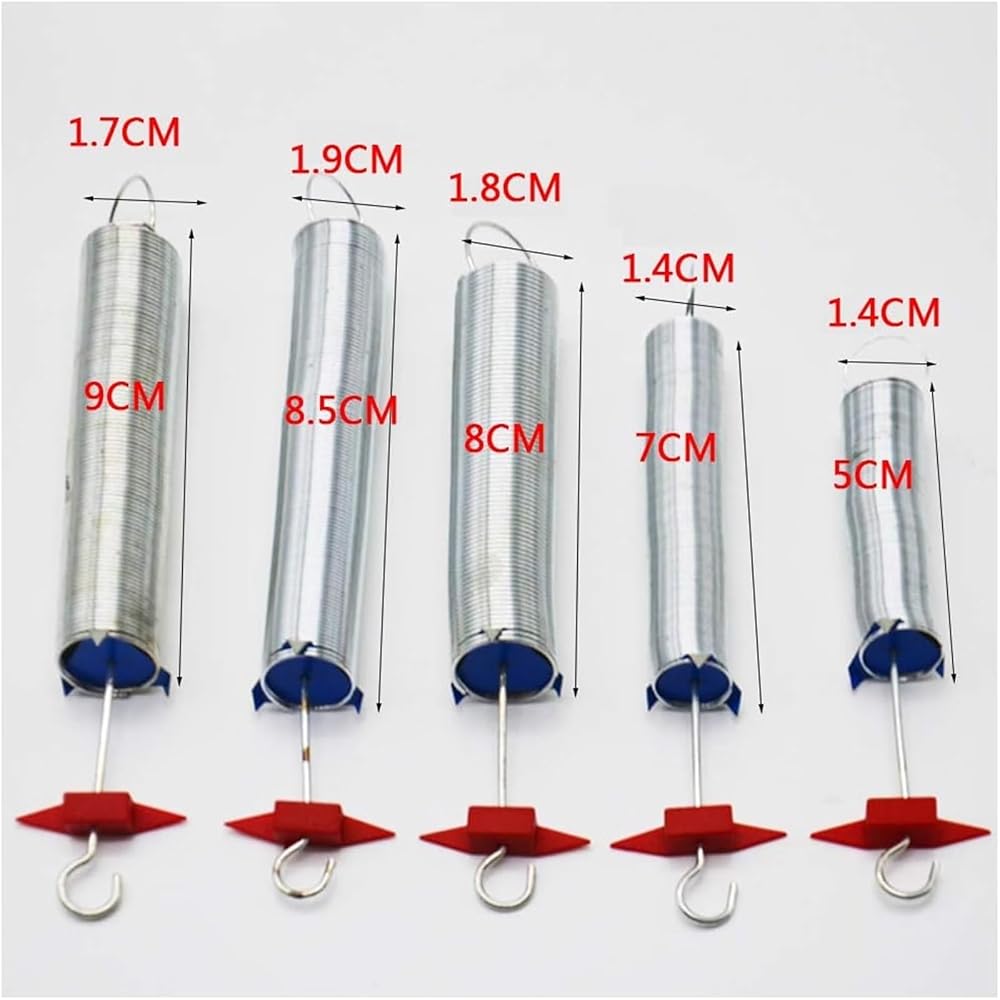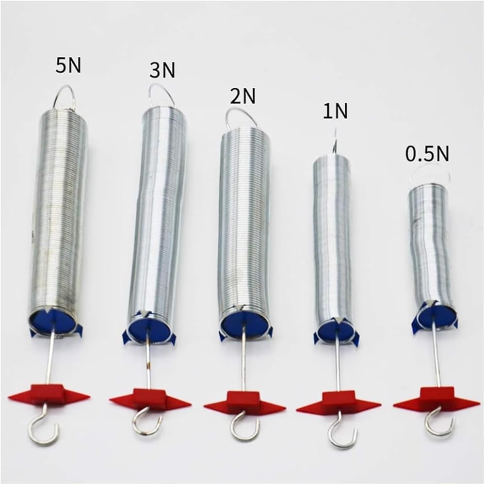 * Five kinds of coil springs made of steel wire are grouped together. The tension limits are 5N, 3N, 2N, IN, 0.5N.
