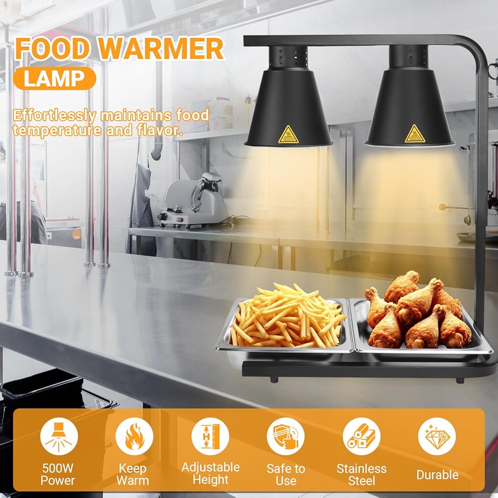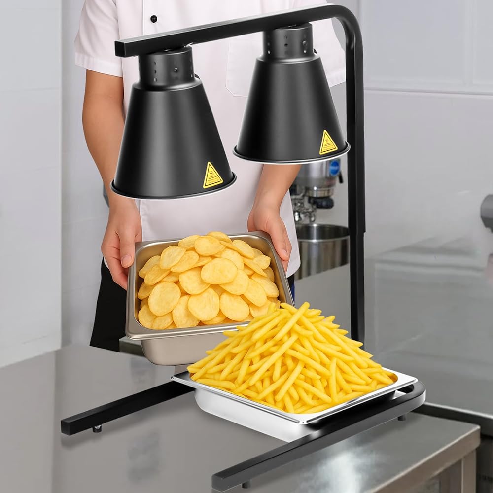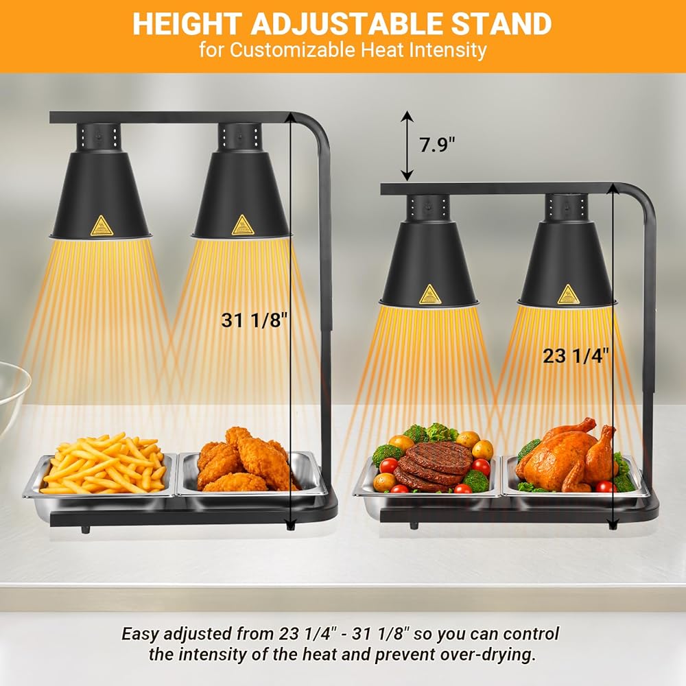 حامل قابل للتعديل بارتفاع 23 بوصة - 31 بوصة للتدفئة الدقيقة: قم بتخصيص كثافة الحرارة باستخدام مصباح الطعام القابل للتعديل للخدمة الشاقة، مثالي للدجاج المقلي أو الناتشوز أو الحلويات الرقيقة. يضمن الحامل المتداخل تدفق الهواء الأمثل لمنع الأنسجة المبللة.