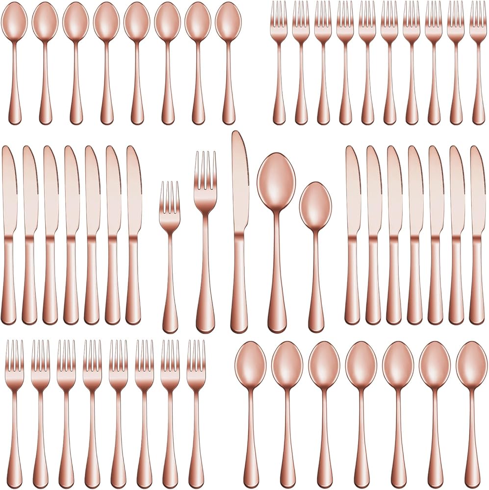الفولاذ المقاوم للصدأ الفاخر: مجموعة أدوات المائدة هذه مصنوعة من الفولاذ المقاوم للصدأ عالي الجودة بدرجة الطعام وهو متين للغاية ومقاوم للصدأ والتآكل وغير سام وخالي من البيسفينول A ولا يترك أي مذاق معدني. وفي الوقت نفسه، تضمن متانتها أنها لن تنحني بسهولة مما يوفر لك استخدامًا طويل الأمد. والأهم من ذلك أنها آمنة للاستخدام في غسالة الأطباق.