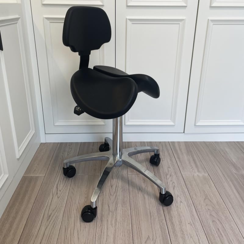 • Ergonomic Design: This saddle stool features a contoured seat that promotes proper posture and reduces back strain.