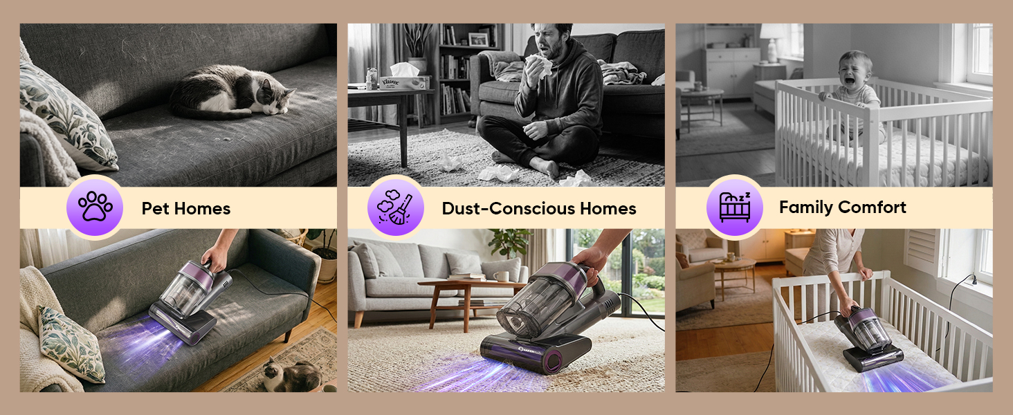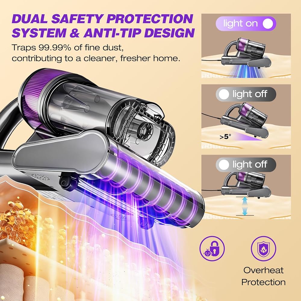 • شفط قوي 16 كيلو باسكال و36,000 نبضة/دقيقة: استمتع بتنظيف أعمق للنسيج مع شفط قوي 16 كيلو باسكال و36,000 نبضة في الدقيقة. تساعد مكنسة المرتبة هذه على رفع الغبار والحطام السطحي بكفاءة، بينما توفر المكنسة الكهربائية القوية للسرير Sakerplus تدفق هواء ثابت وأداء تنظيف واضح عبر المراتب والأسطح المنجدة.