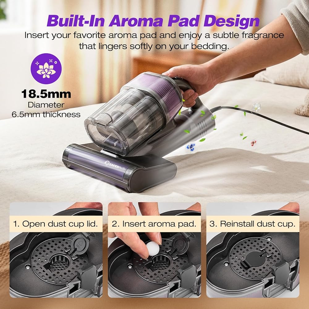 • هواء دافئ بدرجة حرارة 140 درجة فهرنهايت مع فتحة عطرية مدمجة: تتميز بهواء دافئ بدرجة حرارة 55-60 درجة مئوية وضرب عالي التردد، تدعم مكنسة الأريكة هذه روتين تنظيف أكثر شمولاً بينما تساعد الأقمشة على الشعور بالانتعاش بعد كل استخدام. تتضمن المكنسة الكهربائية الأريكة Sakerplus أيضًا فتحة رائحة مدمجة، مما يضيف رائحة خفيفة وممتعة إلى روتين العناية المنزلية الخاص بك