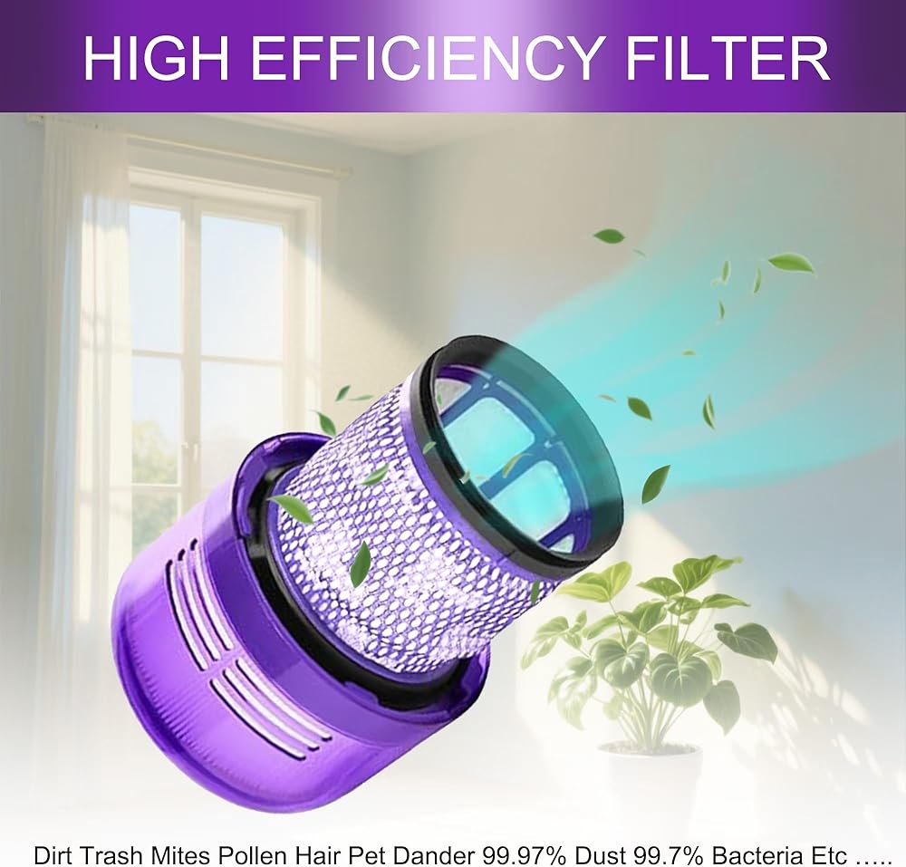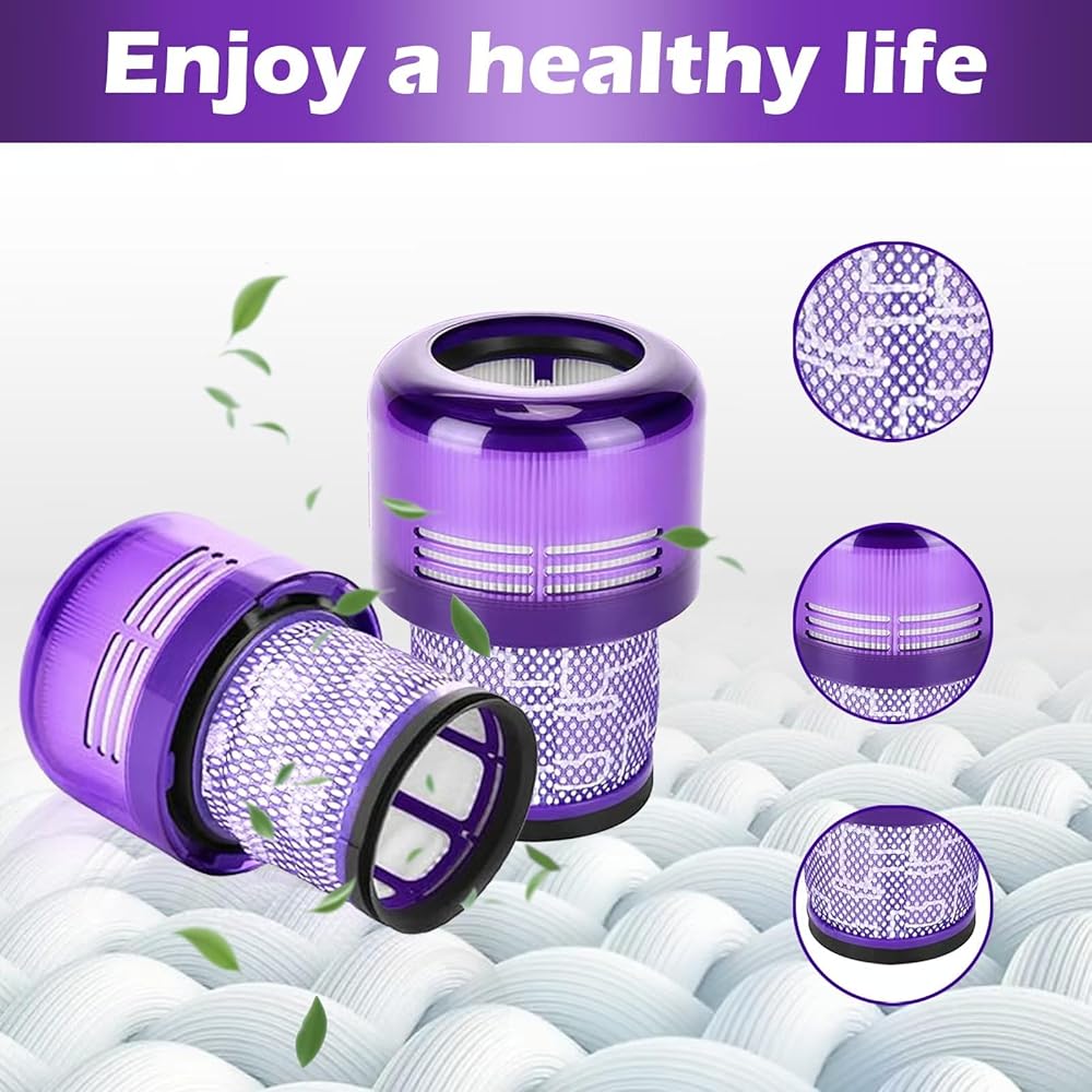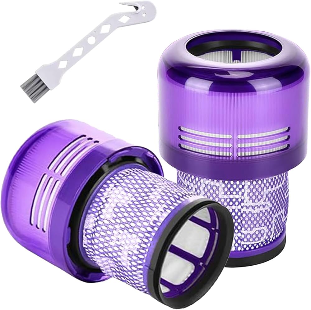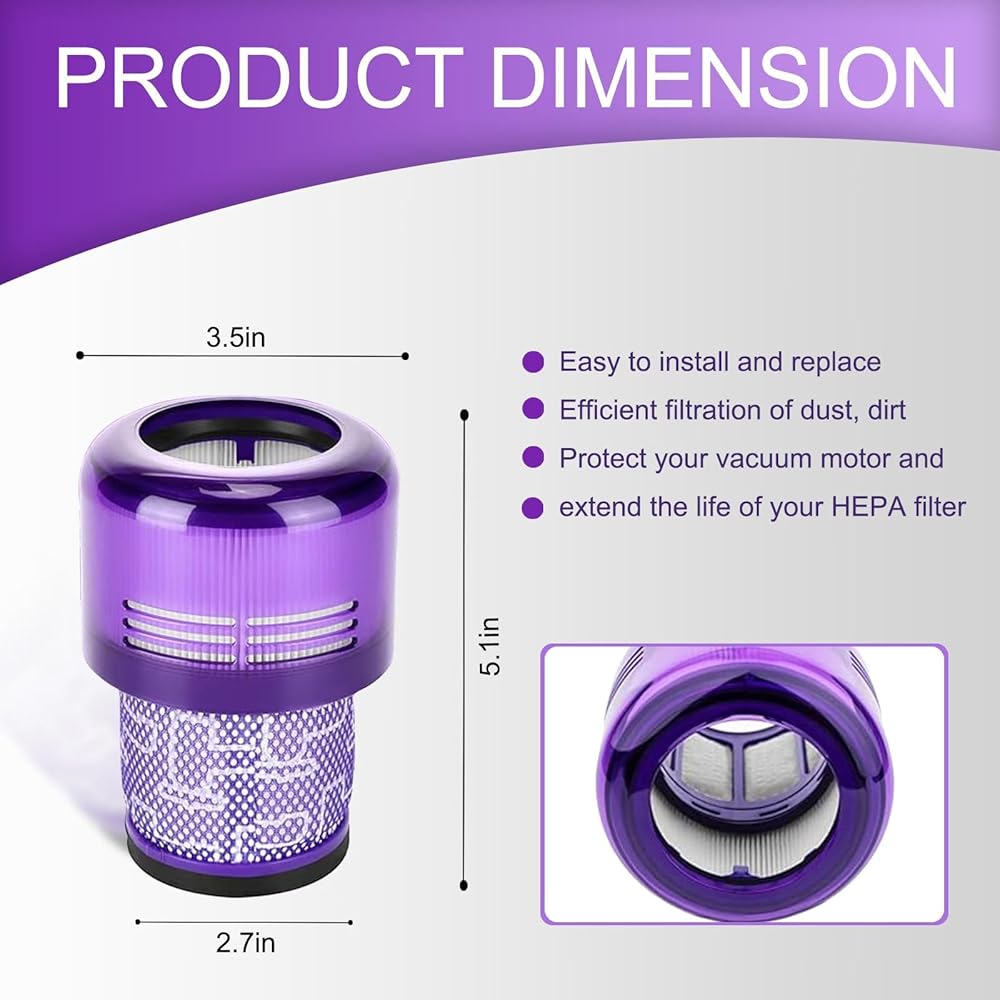 Suitable for Dyson V15/V11/SV14 cordless vacuum with this premium replacement filter. The sleek purple filter element features a sophisticated mesh design that efficiently captures dust and dirt particles, helping to maintain optimal suction power. Measuring 5.1 inches in height and 3.5 inches in diameter, this filter is precisely engineered to fit your vacuum model. The easy-to-install design allows for quick replacement when needed, while the durable construction helps extend the life of your HEPA filter and protects your vacuum's motor. The filter includes a convenient cleaning brush for maintenance. Its compact size and efficient filtration system make it an essential accessory for maintaining your vacuum's performance. Regular replacement helps ensure consistent cleaning power and maintains the air quality in your home. Compatible with Dyson V15, V11, and SV14 models, this filter element is designed for reliable, long-lasting performance.
