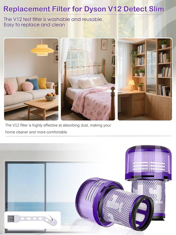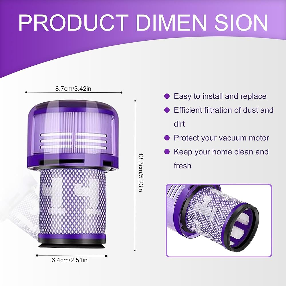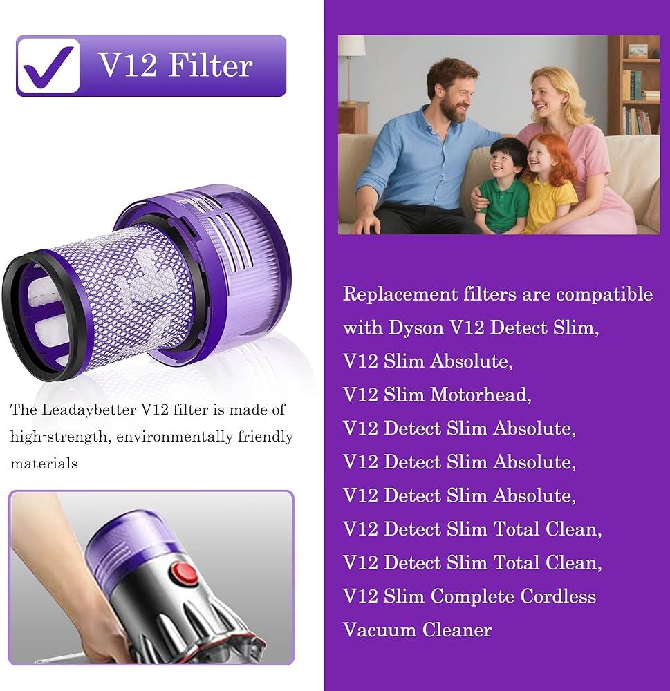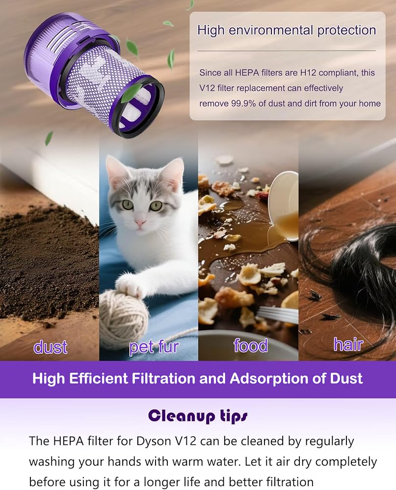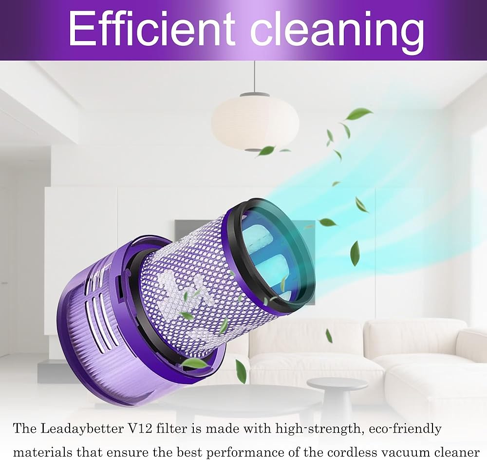 【Suitable for Dyson V12 High Efficiency H12 Filter】Leadaybetter V12 Filter is made of high strength and environmentally friendly materials to ensure optimal performance of wireless vacuum cleaners and keep your home clean and fresh. Since all HEPA filters are H12 compliant, this V12 filter replacement can effectively remove dust and dirt from your home with an efficiency of 99.9%.