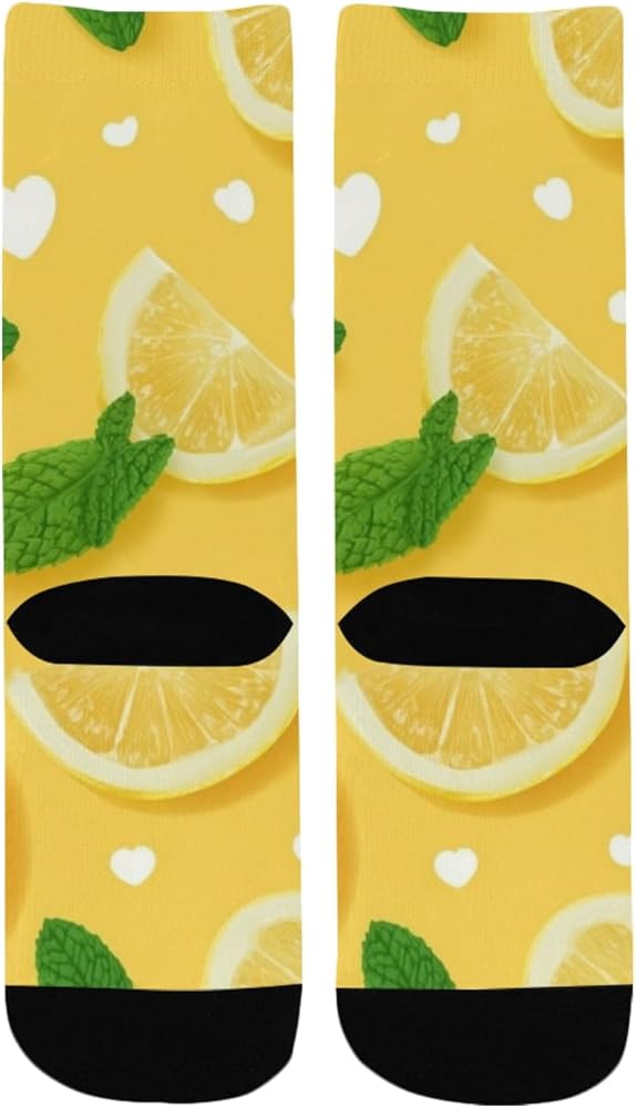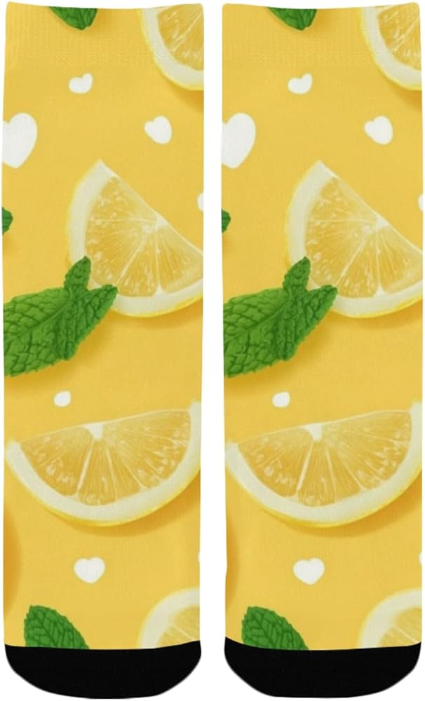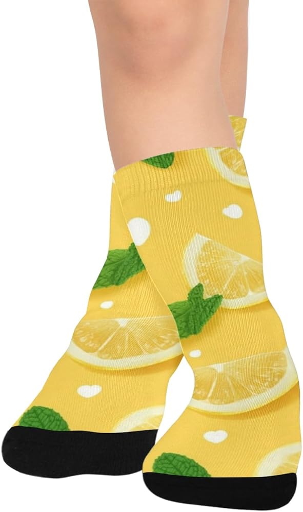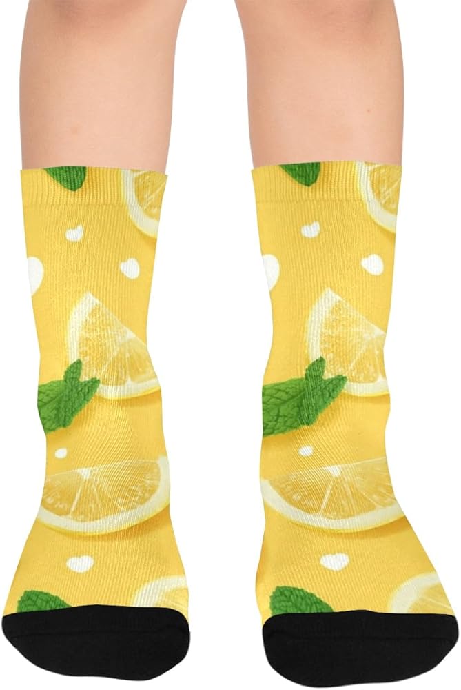 جوارب المشي لمسافات طويلة على شكل قلوب الليمون والنعناع الأصفر - جوارب شتوية حرارية سميكة دافئة للأولاد والبنات الصغار للمدرسة، والارتداء اليومي والأنشطة الخارجية