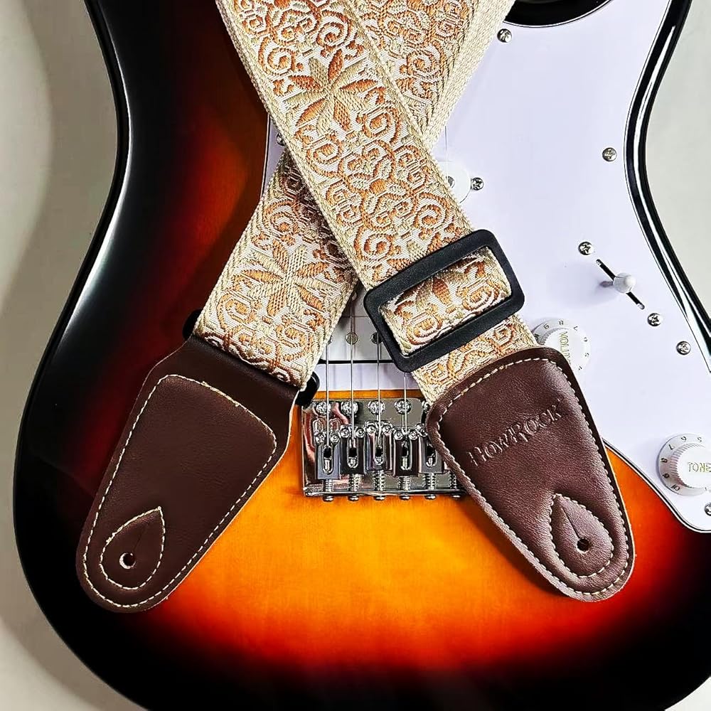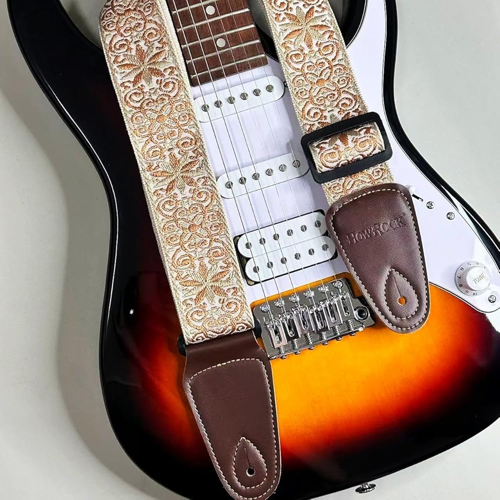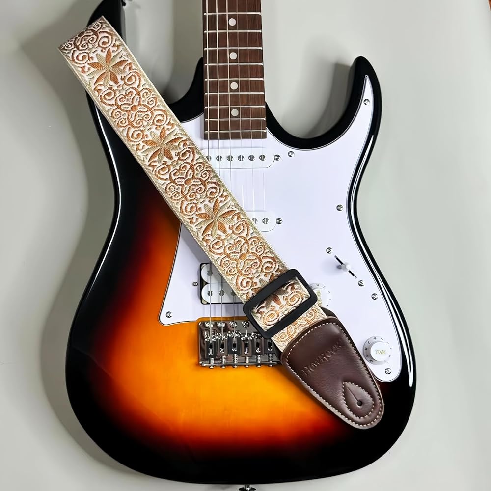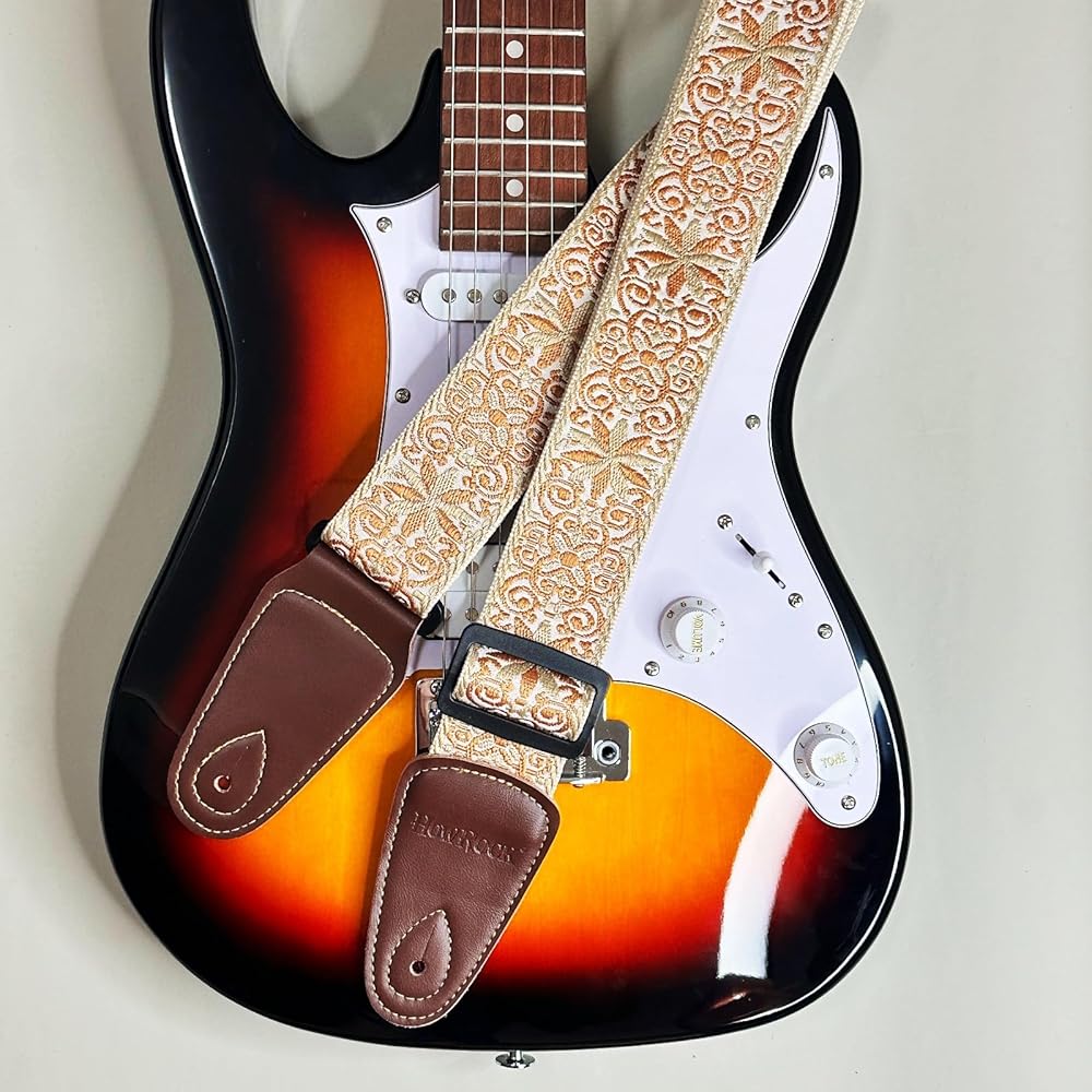【Durable & Comfortable】: Crafted with premium 3D cotton embroidery and reinforced leather ends, this guitar strap is built to last, resisting cracks and wear even with heavy use. The generous 2-inch width and 2mm thickness provide exceptional comfort, reducing shoulder strain during long practice sessions or live performances