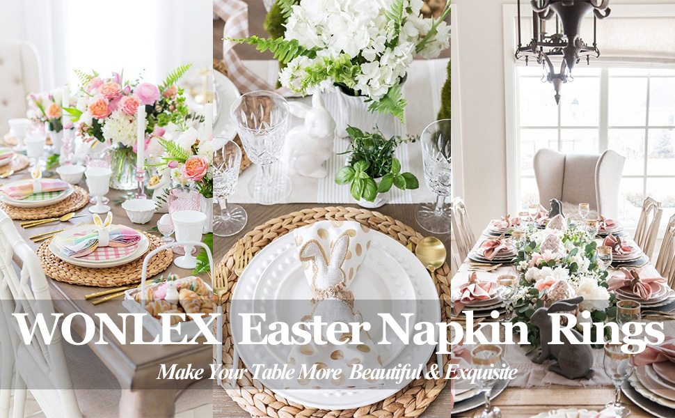 🥚【إنشاء إعداد طاولة موسمي】-- قم بإقران المناديل القماشية مع حلقات المناديل الرائعة هذه التي تحمل طابع عيد الفصح لتعزيز جاذبية طاولتك، مما يخلق إعداد طاولة موسمي واحتفالي. حتى أصغر التفاصيل تساهم في سحر ديكور طاولتك الربيعية.