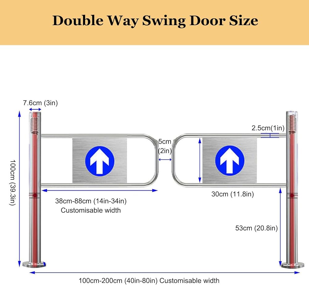 Supermarket Entrance Security Door,, the safety and functionality of your space with our premium Entrance Swing Gate, designed for versatile use in environments like warehouses, supermarkets, and public venues. This robust gate, crafted from durable stainless steel tubing, offers a reliable solution for managing pedestrian traffic with style and efficiency. **Key Features:** - **Durable Construction:** Made from high-quality stainless steel, our swing gate ensures longevity and withstands heavy use. - **Customizable Dimensions:** Available in various lengths from 100 cm to 200 cm, the gate can be tailored to fit your specific requirements, ensuring a perfect match for any entrance. - **Versatile Applications:** Ideal for industrial warehouses, shopping malls, libraries, and security inspection areas, this gate effectively controls access and enhances safety. **Usage Scenarios:** 1. **Warehouse Logistics:** Streamline the flow of personnel in busy industrial environments. 2. **Supermarket Entrances:** Manage customer entry and exit efficiently, contributing to a better shopping experience. 3. **Public Spaces:** Perfect for libraries and subway stations, ensuring organized access and crowd control. 4. **One-Way Traffic Control:** Enhance security in designated areas with clear guidelines for pedestrian movement. **Package Includes:** - 1 x Entrance Swing Gate - Installation Accessories **Important Notes:** - The gate is designed to push open easily and will automatically close after use, promoting seamless entry and exit. - If necessary, the swing arm can be shortened to accommodate your space requirements. Enhance your access control solutions with our Entrance Swing Gate, combining safety, convenience, and modern design to your environment. Upgrade today and experience the difference!